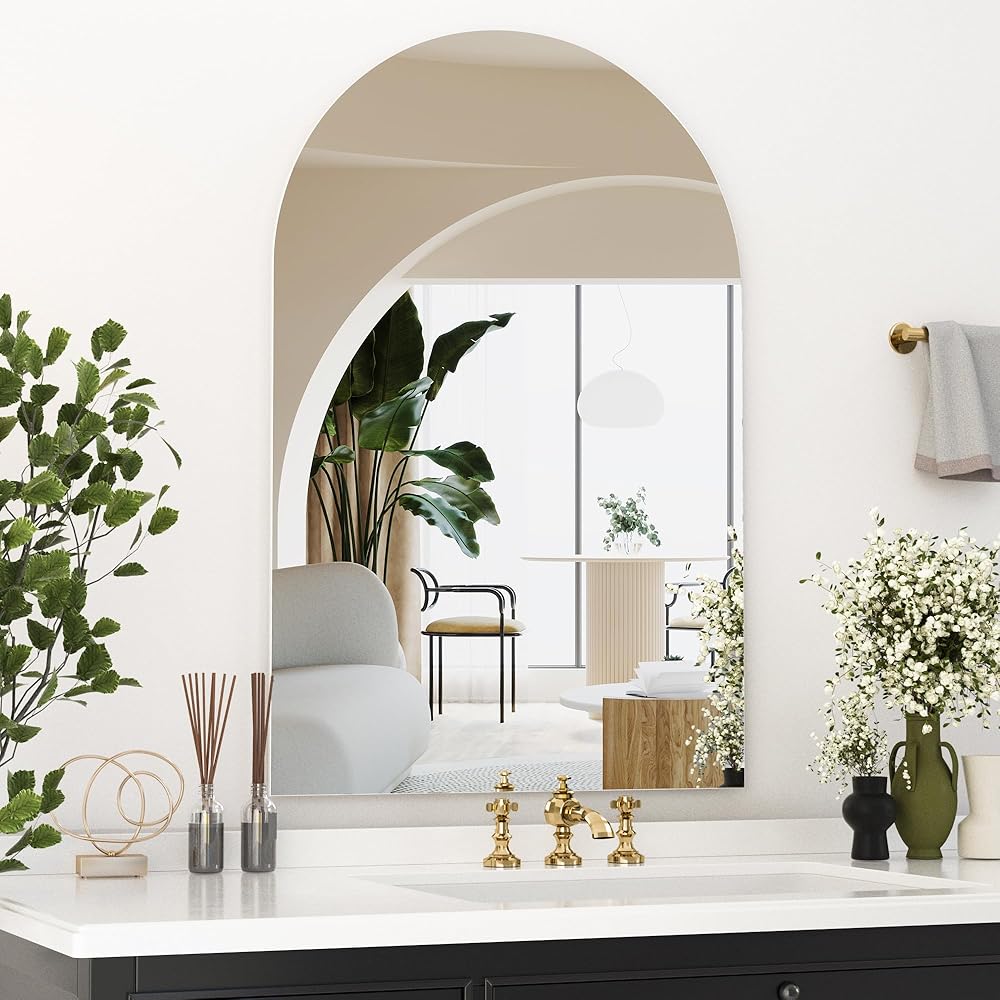 【HD Explosion-proof Glass】The arch Frameless mirror is made of premium explosion-proof membrane glass so that it's safer for you and your family. Clear lines, simple modern design.