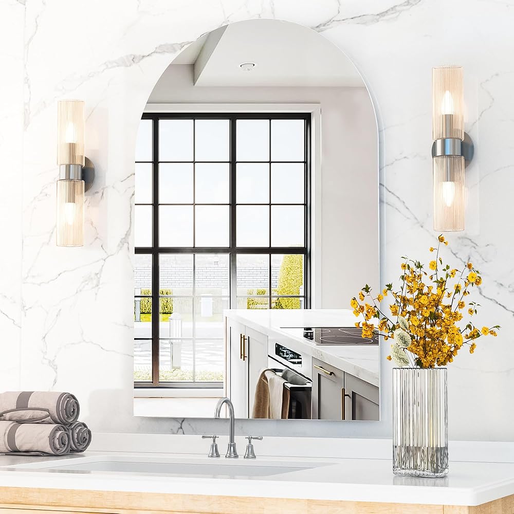 Antok Arch Frameless Bathroom Mirror, 24"x36" Wall Mounted Mirror for Bathroom, Frameless Vanity Mirror for Bedroom, Entryway, Living Room