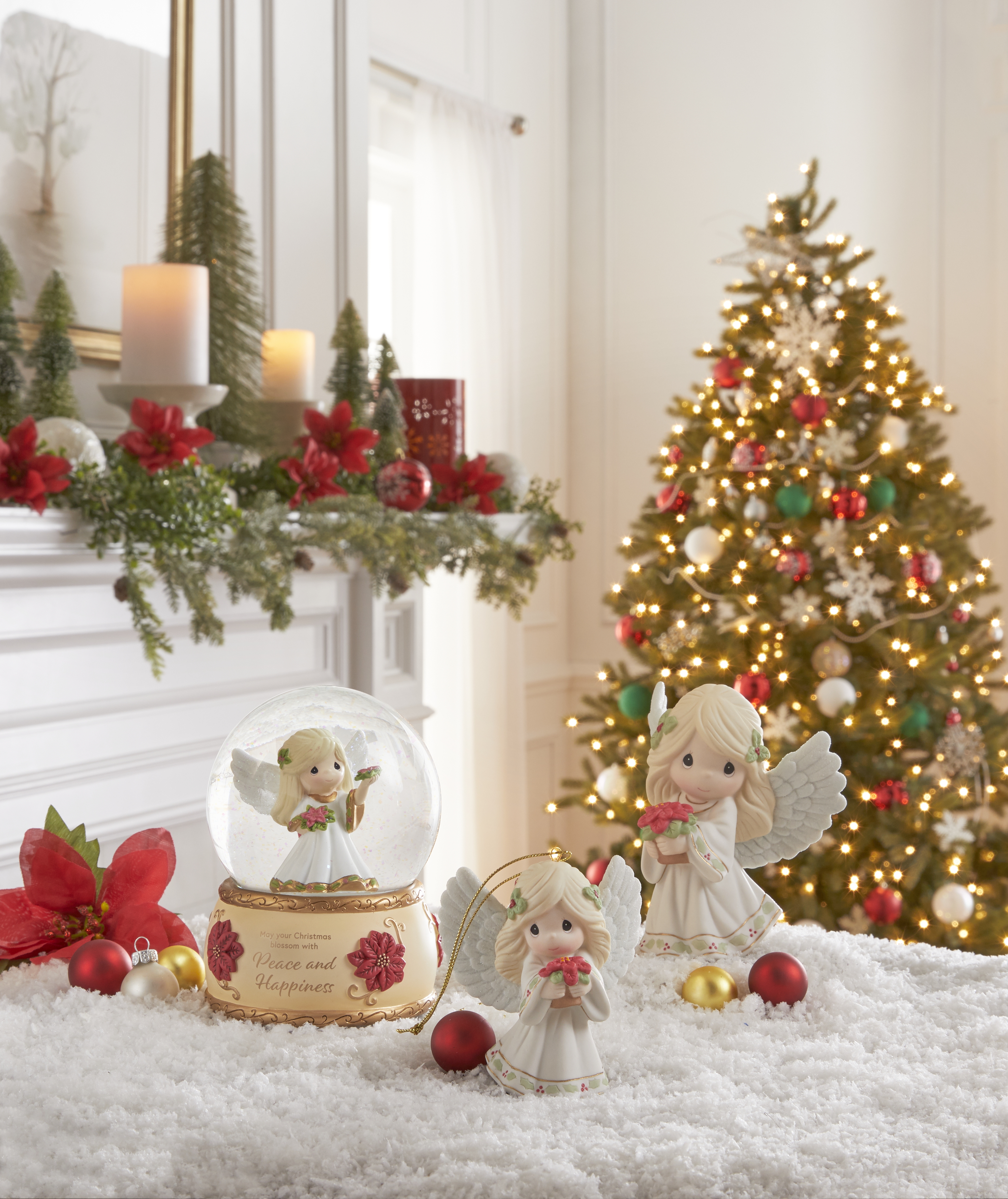 Hark! Is that an angel singing? Or is it the gentle melody from a beautiful snow globe? The 11th snow globe introduction to the Precious Moments Annual Angel Series is a heavenly musical addition to holiday décor. It plays the traditional Christmas carol “Hark, The Herald Angels Sing.” The glorious angel inside the globe holds a precious Christmas bloom toward the heavens as glitter floats around her. The base is accented with poinsettias and shares the message “May your Christmas blossom with Peace and Happiness.” A thoughtful gift for friends, family, neighbors, or anyone who has a special love for angels, this Annual Angel Series snow globe will be treasured for years to come. Measuring approximately 5.75”H., this snow globe is carefully crafted of resin and is expertly hand-painted. For more than 40 years, Precious Moments has been devoted to making the world a kinder place by helping people share love. A timeless brand, Precious Moments helps you celebrate everyday moments and commemorate special occasions with hand-painted porcelain figurines and ornaments as well as contemporary kitchenware, home décor, baby gifts, and more. A unique inspirational message lies at the heart of every Precious Moments product, thoughtfully designed so you can turn your special moments into memories that last a lifetime.