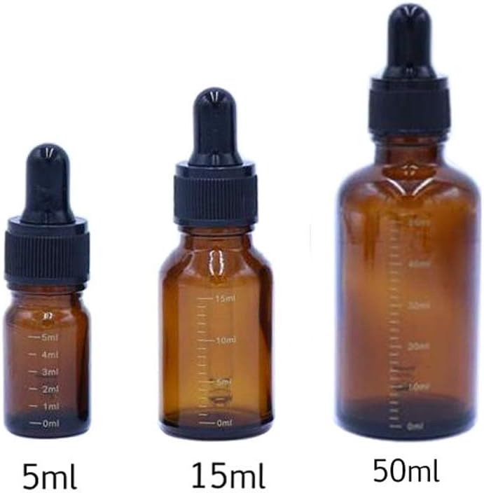 Name:Amber Glass Graduated Scale Dropping Bottle; Package: 3 x Bottle; Color: Amber Glass Body And Black Rubber Glass Dropper/Pipette; Capacity:5ML;15ML;30ML;50ML;100ML;5 capacity for selection
