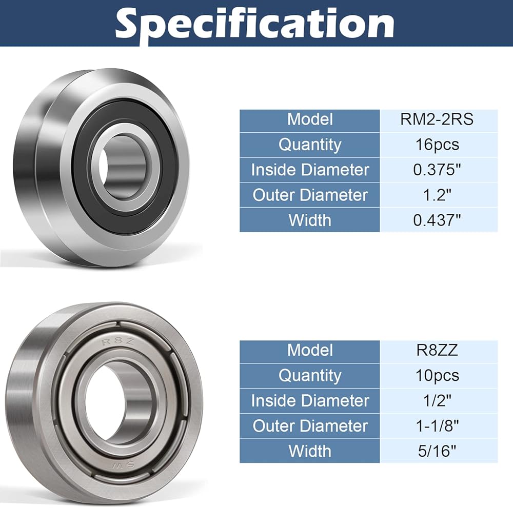 【العبوة】 تتضمن 16 قطعة محمل كروي RM2-2RS و10 قطع محمل كروي R8ZZ