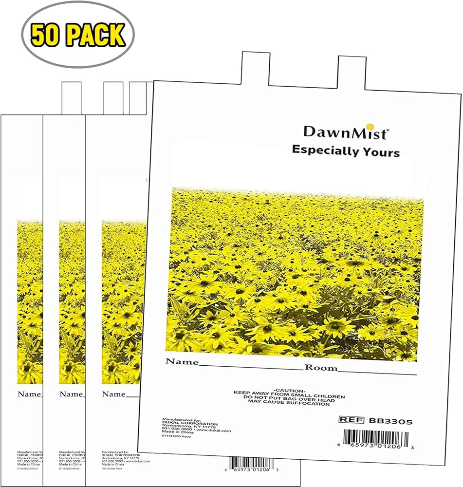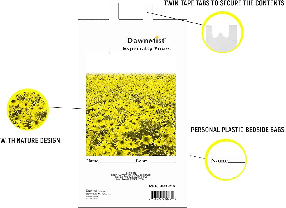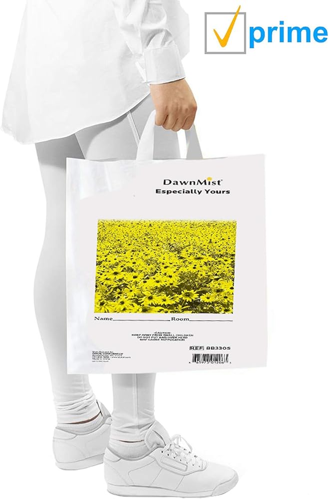 حقيبة دوكال للمتعلقات الشخصية 20 × 18.5، حزمة من 50 كيس أبيض لمتعلقات المرضى 1,3 مل من البولي إيثيلين، حقيبة متعلقات مطبوعة طبيعية بمقابض للمستشفيات والفنادق