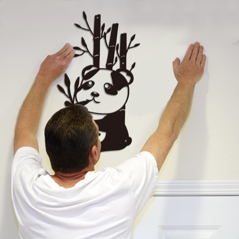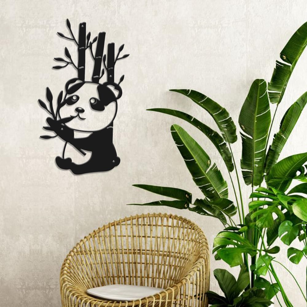 Panda Bamboo Wall Decor, Wall Decor Living Room, Metal Wall Decor, Metal Panda Wall Decor, Cute Wall Decor Art, Kawaii Wall Decor, Dorm Room Wall Decor, Wall Art Metal, Panda Decor 12 inches
