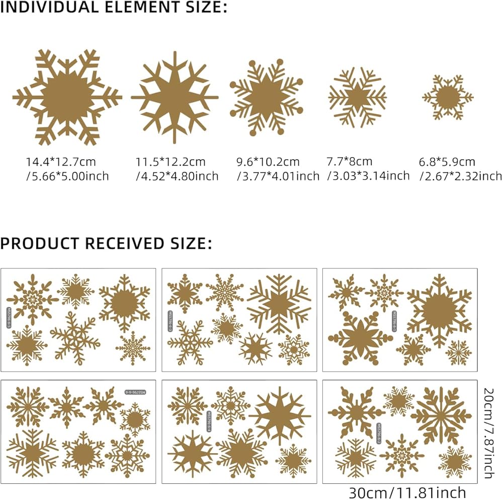 SNOWFLAKE WALL STICKERS YOU WILL GET:The snowflake set includes 6 winter snowflake wall stickers, each size is 7.87 inches * 11.81 inches, multiple different styles of snowflake wall stickers and enough quantity to make your room more charming.