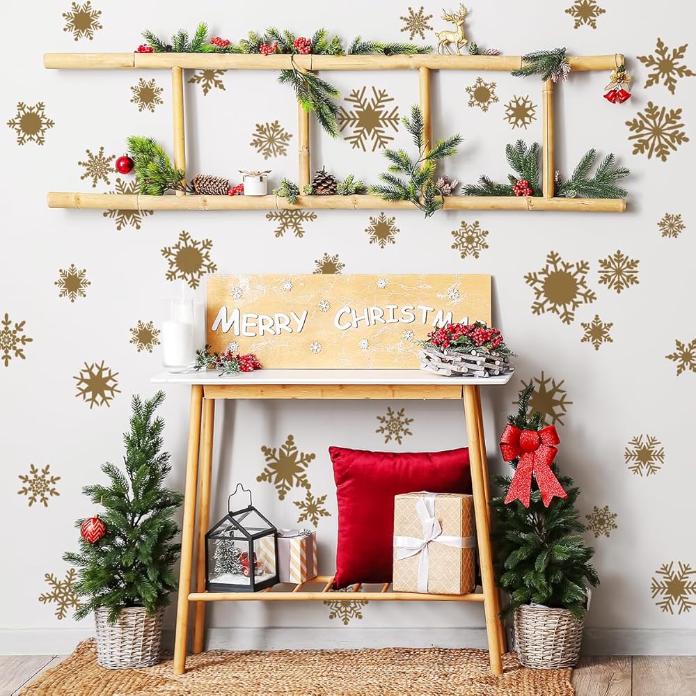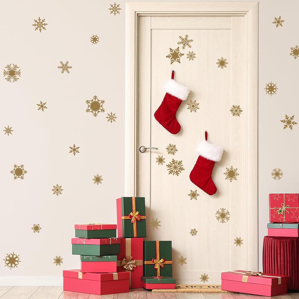 Bring a touch of elegance to your winter décor with our golden snowflake wall stickers. Featuring a variety of intricate designs, these decals can be placed on walls or windows, adding a magical shimmer to your space. Perfect for Christmas or any winter celebration, they create a festive atmosphere that feels both warm and enchanting. The golden snowflakes capture the beauty of winter, turning any room into a sparkling wonderland.