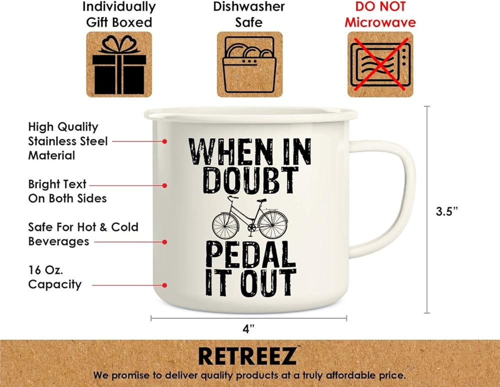 كوب قهوة Retreez عندما تكون في شك بدواسة دراجة نارية 16 أونصة من الفولاذ المقاوم للصدأ معدني للتخييم في المخيمات - مضحك، ساخر، تحفيزي، هدية عيد ميلاد ملهمة لصديق زملاء العمل والأب
