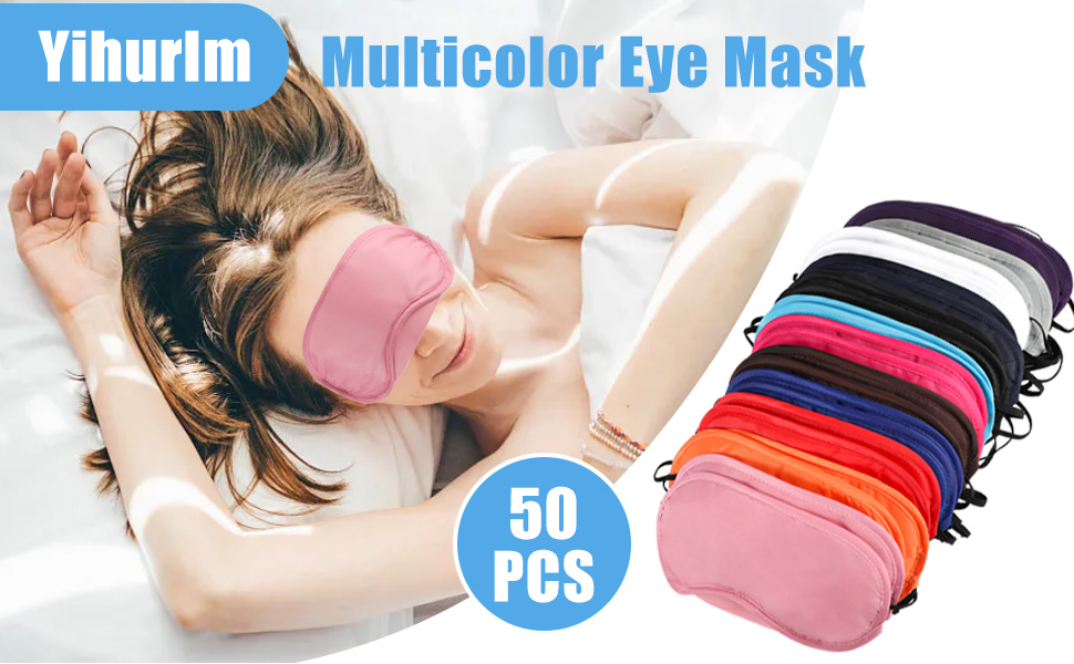 50 عبوة من قناع العين للنوم، معصوب العينين خفيف الوزن، معصوب العينين لألعاب الحفلات، أقنعة النوم مع وسادة أنف وحزام مطاطي، قناع نوم للنوم أثناء السفر، غطاء عين للنساء والرجال، 12 لونًا