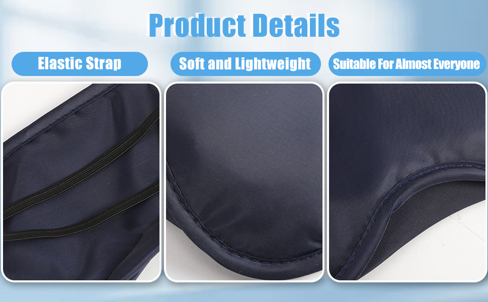 • مادة ناعمة: عصابات العينين خفيفة الوزن مصنوعة من نسيج بوليستر عالي الجودة وإسفنجة. إنه ناعم ومريح، ويساعد على التخلص من التعب ويحسن بيئة النوم.