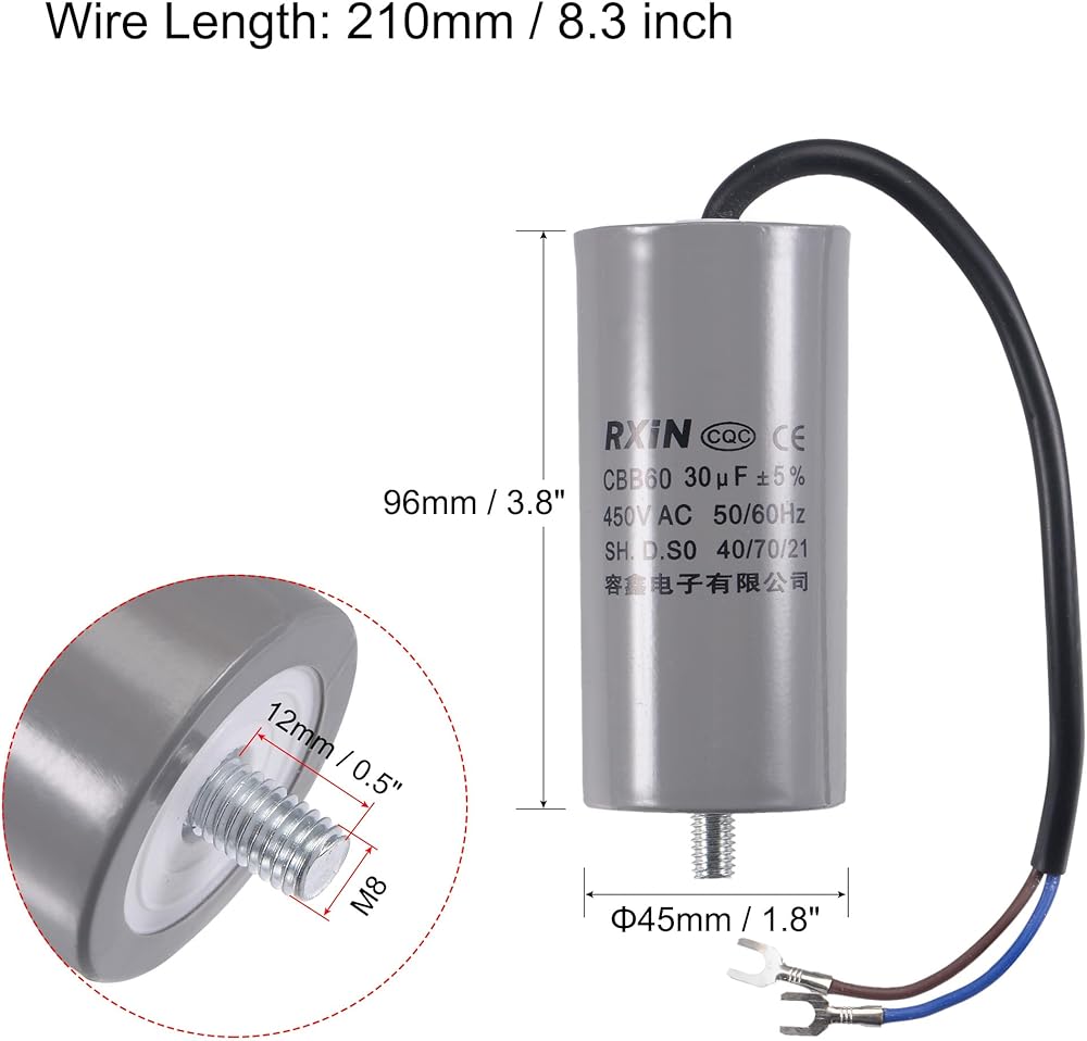 • [المواصفات] - السعة المقدرة: 35 فائق التوهج؛ التسامح: ±5%؛ الفولطية المقدرة: 450 فولت تيار متردد؛ حجم الجسم: 96x45 مللي متر/3.8x1.8 بوصة (الطول * العمق) ؛ التردد المقدر: 50/60 هرتز؛ الفئة المناخية: 40/70/21
