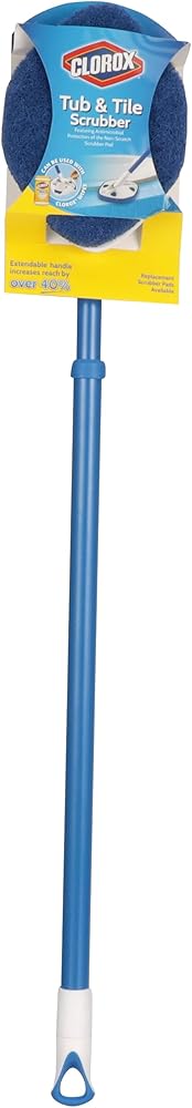 The Clorox Tub and Tile Scrubber is the perfect tool to use in the bathroom. Great for reaching high hard to reach areas of the shower and helps eliminate the need for bending over when cleaning the tub with its extension handle. The handle extends your reach over 40%. The scrubber head also features cloth lock tabs to attach a towel or disposable wipe for added cleaning power. The scrubber head features which helps prevent odor.