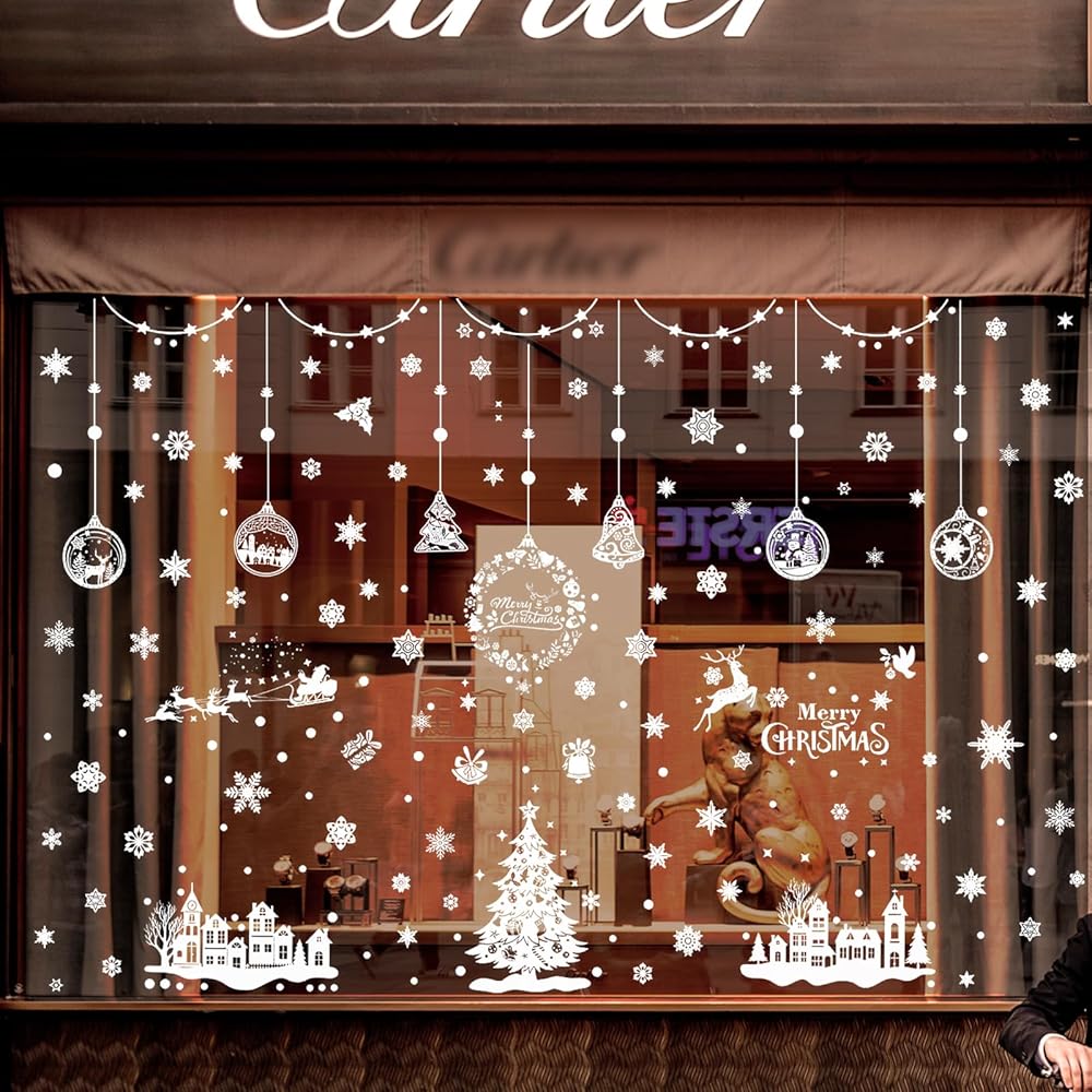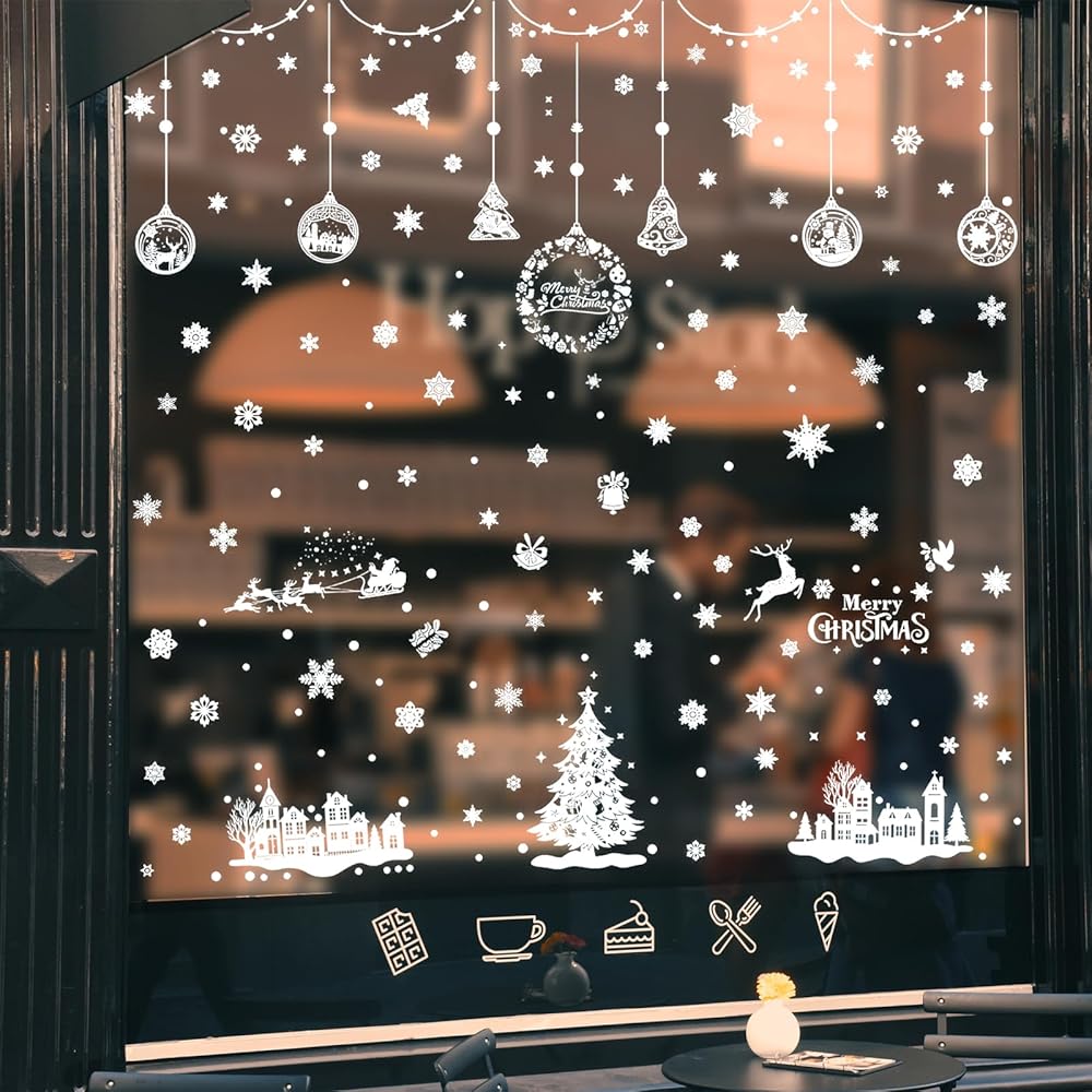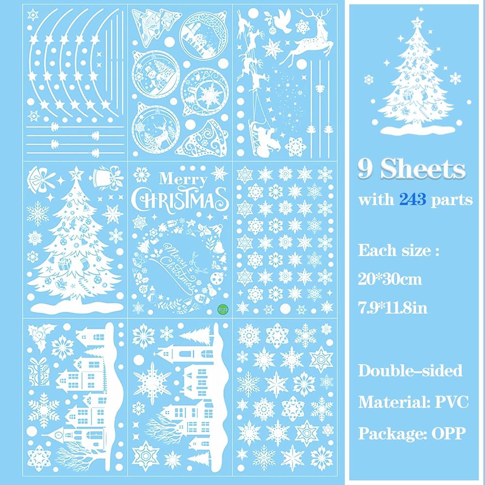 أنماط موضوع عيد الميلاد: تختتم ملصقات النوافذ عدة أنماط من سانتا كلوز، وشجرة الكريسماس، والأيائل وندفة الثلج، وهي زينة لطيفة لعيد الميلاد للنوافذ الزجاجية.