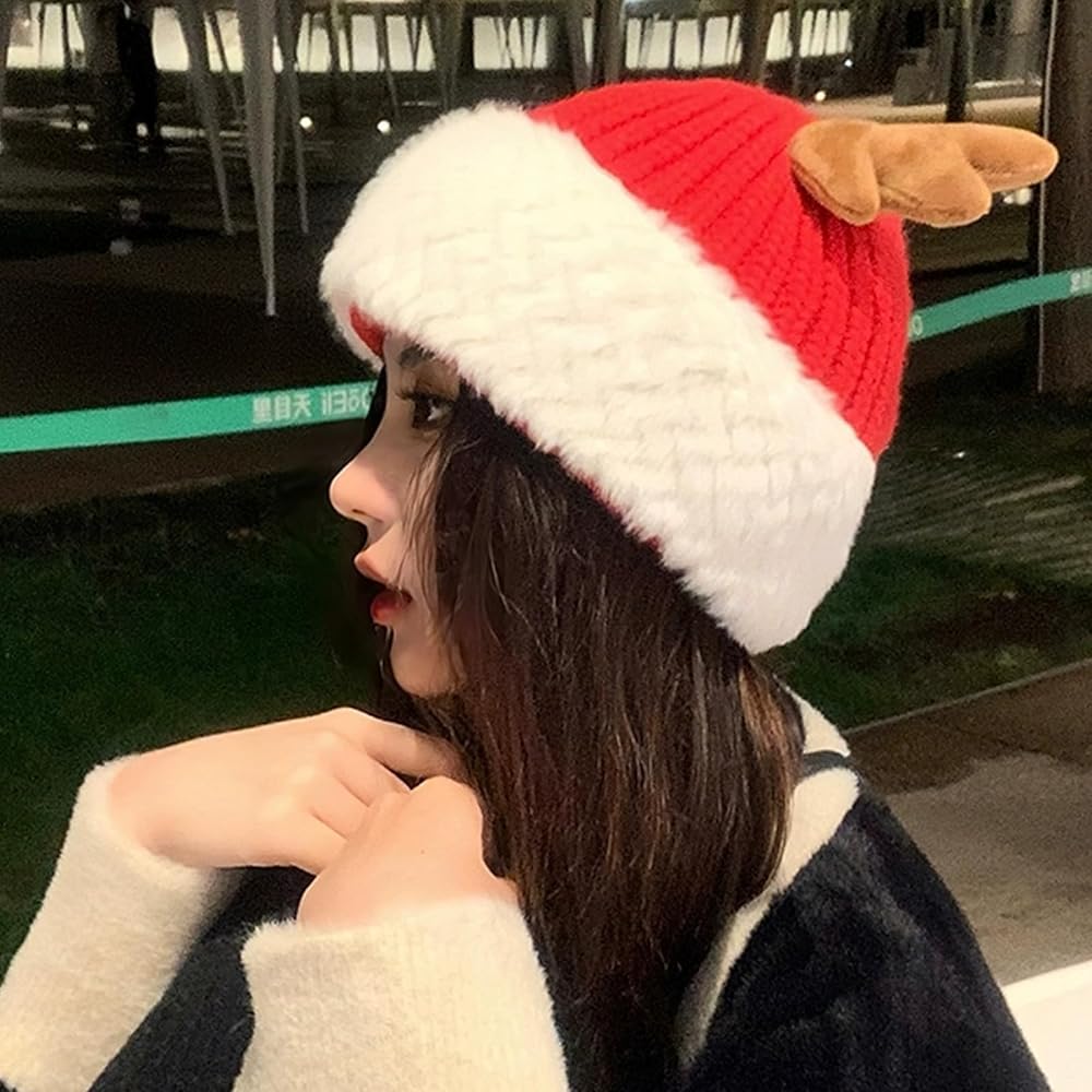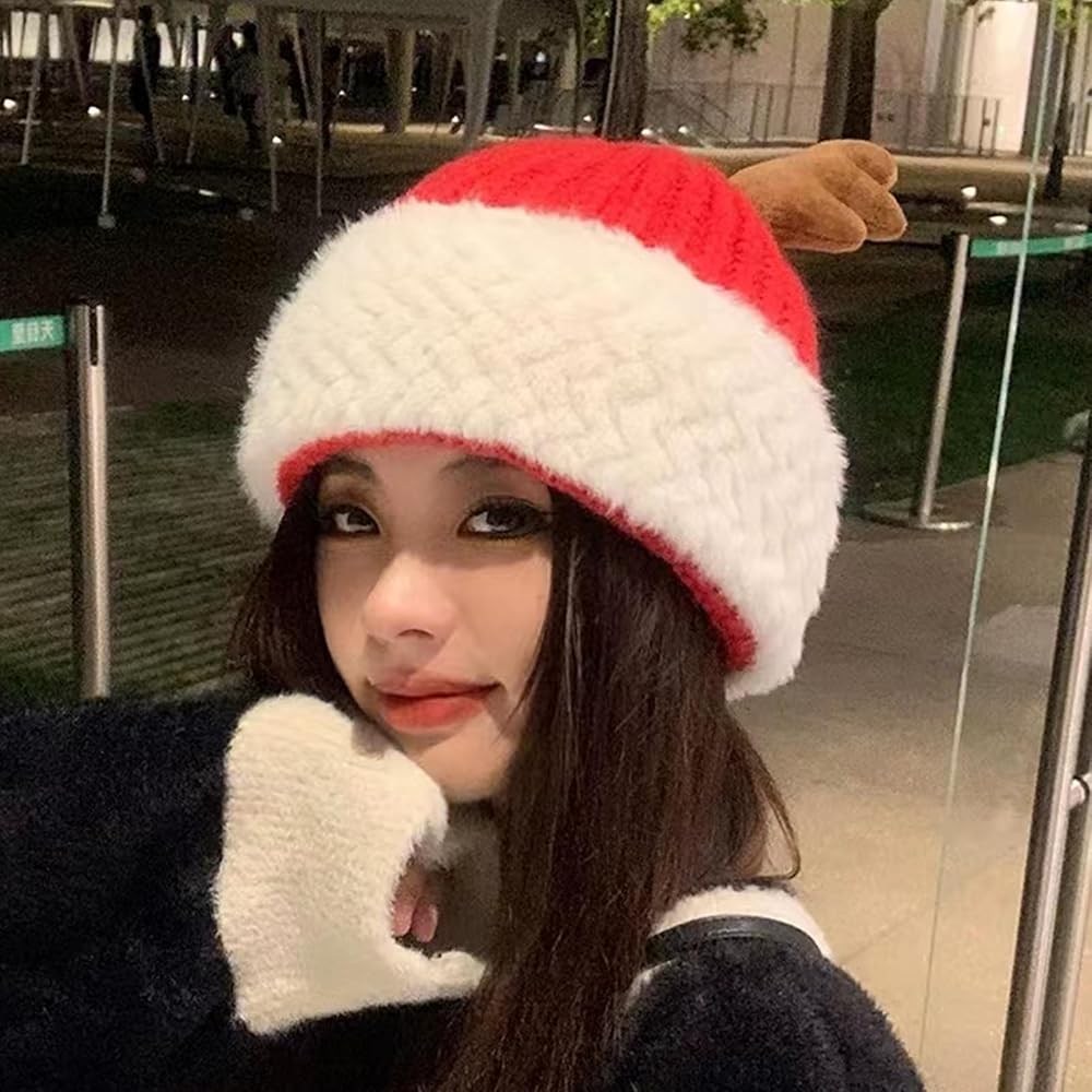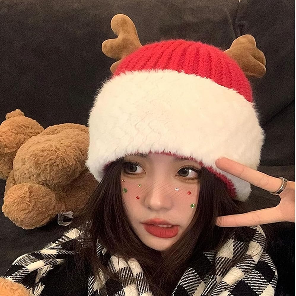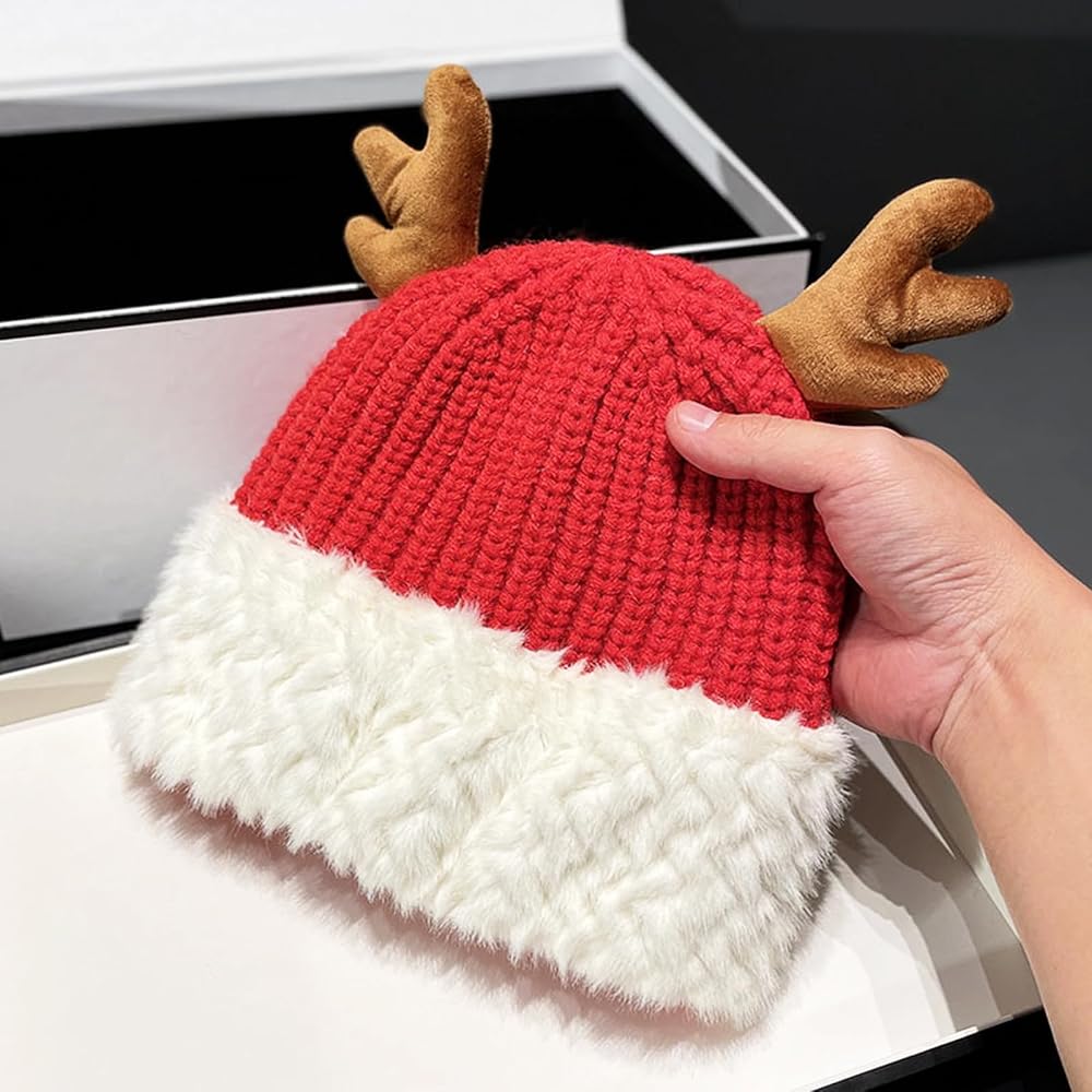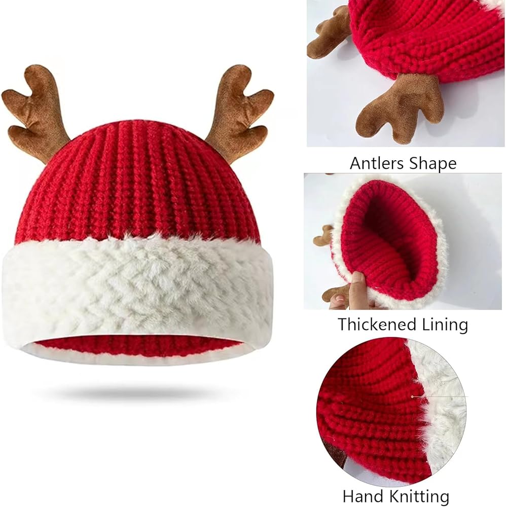 عيد الميلاد الغزلان الرنة متماسكة قبعة صغيرة للأطفال البالغين، قبعة سانتا الدافئة مضحك قبعة عيد الميلاد القبعات الشتوية للعام الجديد عطلة احتفالية الطرف