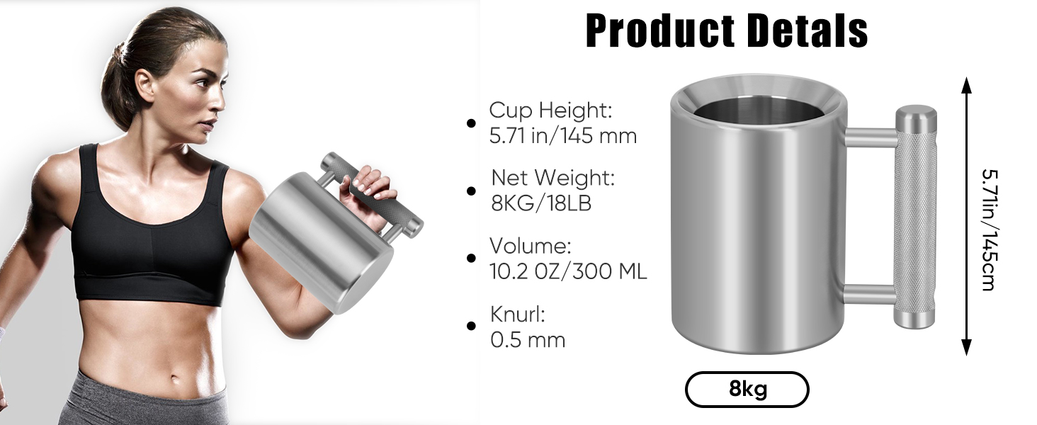 استخدام 2 في 1: يمكن أن يسمح لك كوب الدمبل الثقيل بتمرين قوتك أثناء الاستمتاع بمشروب القهوة الخاص بك، حتى تتمكن من الحصول على شكل جسم جيد