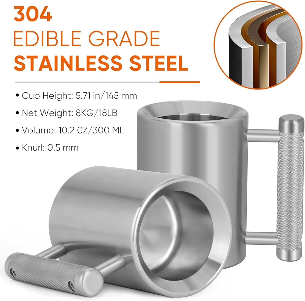 مادة صالحة للطعام: كوب الدمبل الثقيل مصنوع من الفولاذ المقاوم للصدأ 304 ويزن 18 رطل (8 كجم)، مقاوم للتآكل، قوة عالية، سطح أملس، مقاوم للأكسدة، غير سام وآمن.