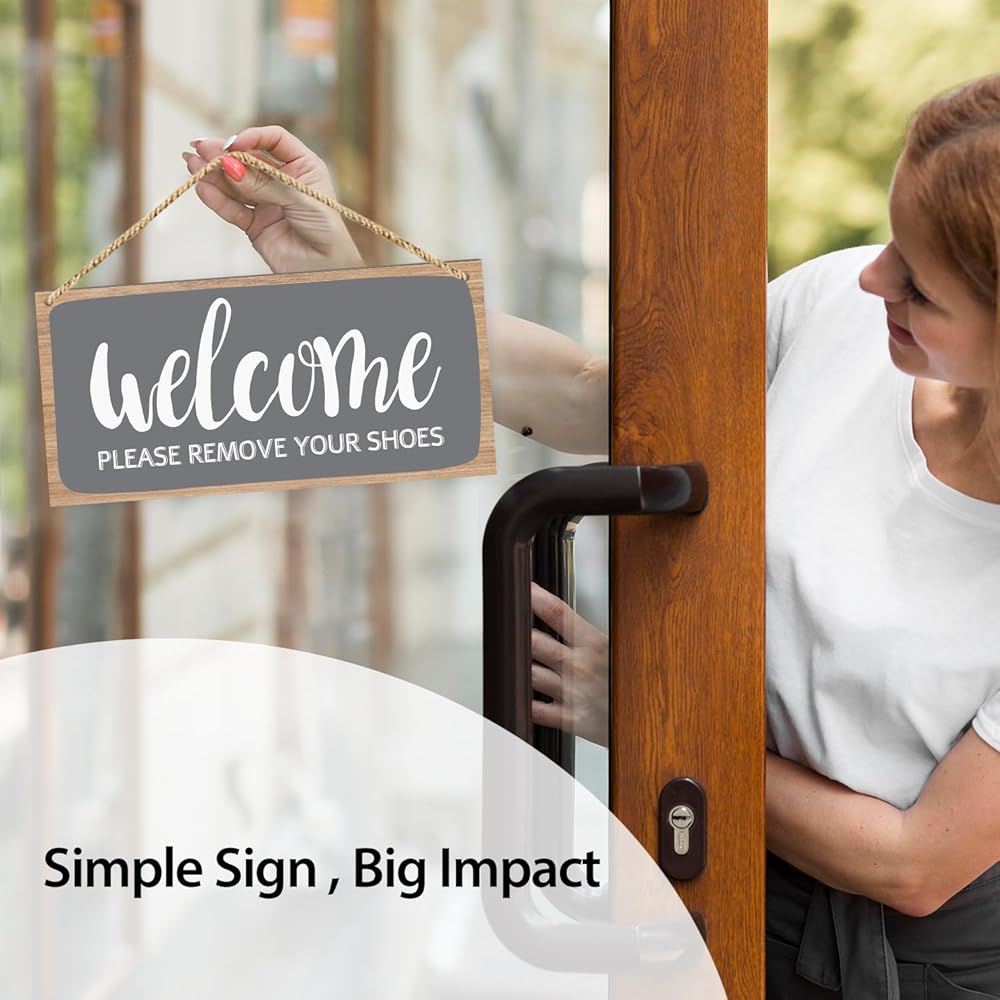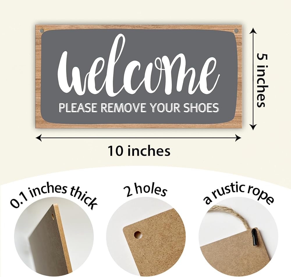 لا توجد لافتة أحذية للترحيب بالمنزل، لوحة خشبية معلقة، قم بإزالة حذائك من اللافتة، علامة إزالة الأحذية من علامة الحائط، لافتة خشبية للباب، مدخل الشرفة، غرفة المعيشة، هدية الترحيب بالمنزل - 16
