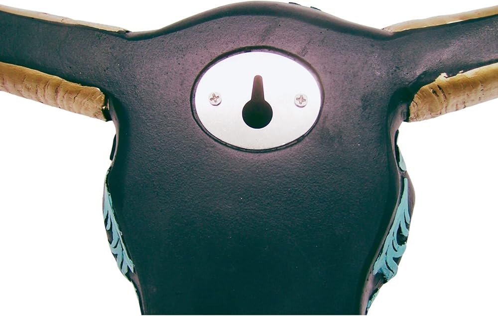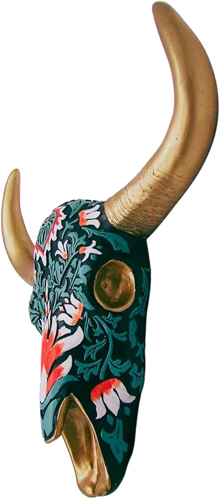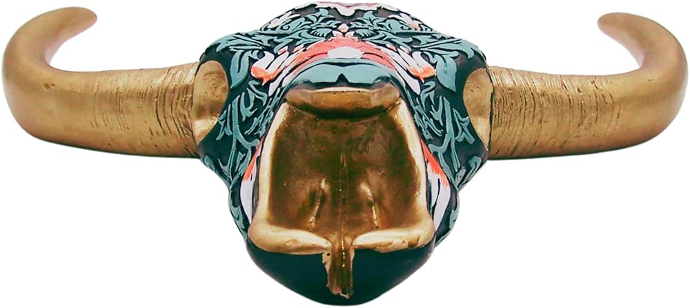 جمجمة البقرة الفيروزية النابضة بالحياة من Wowser مع قرون ذهبية اللون، ديكور جدار قبلي، فن حيواني، 13 بوصة