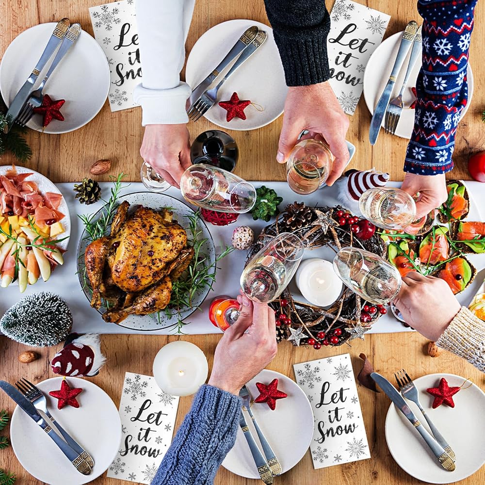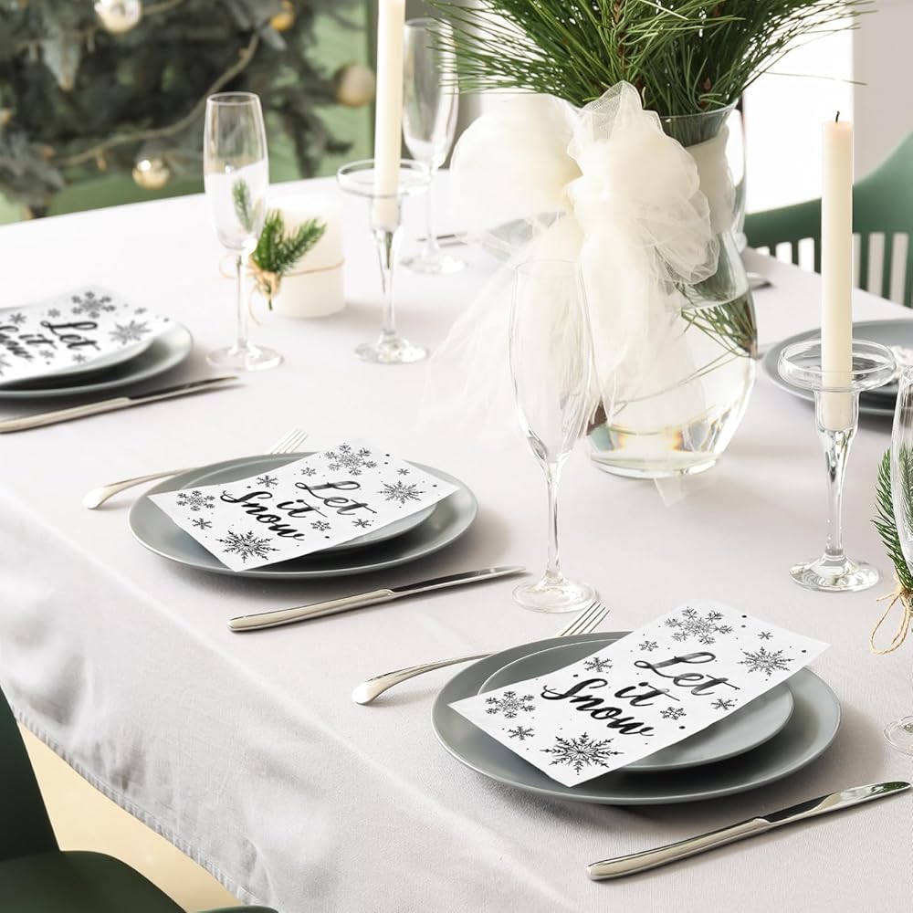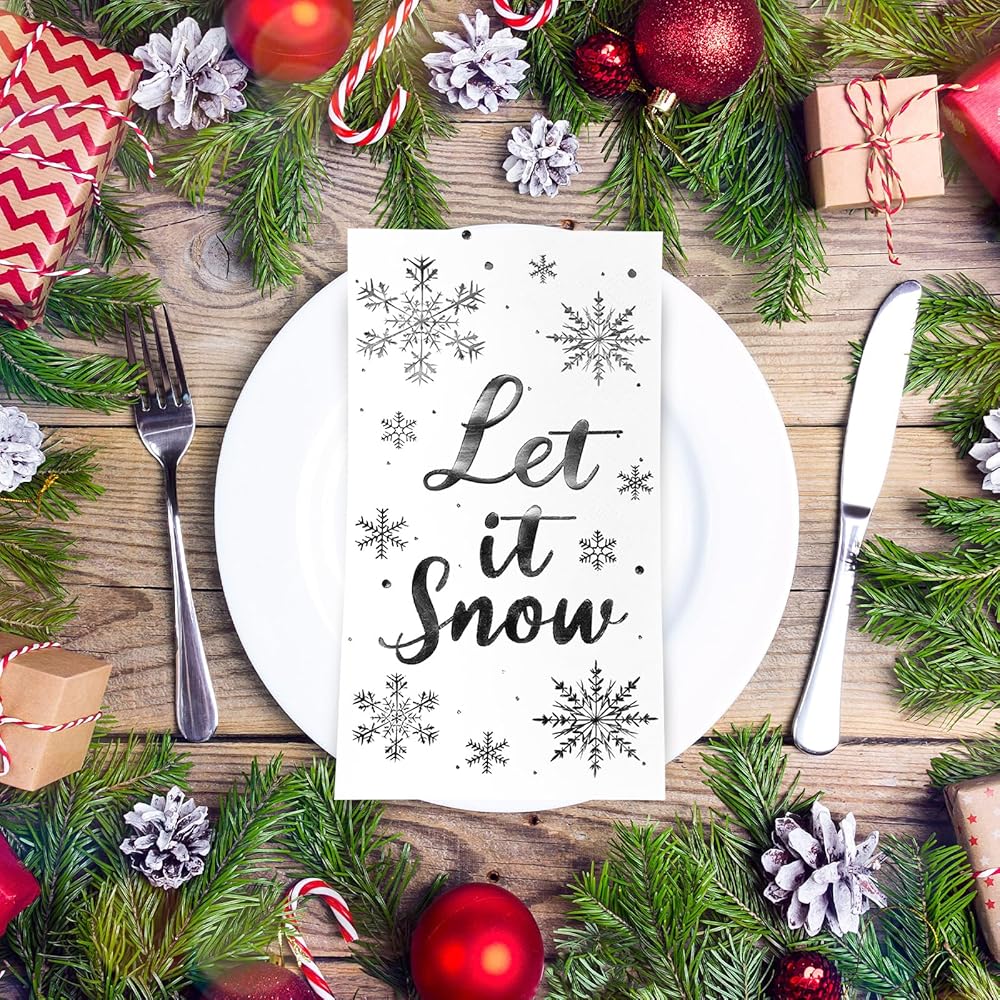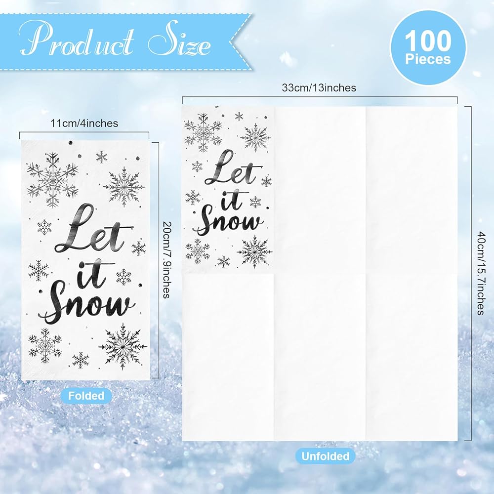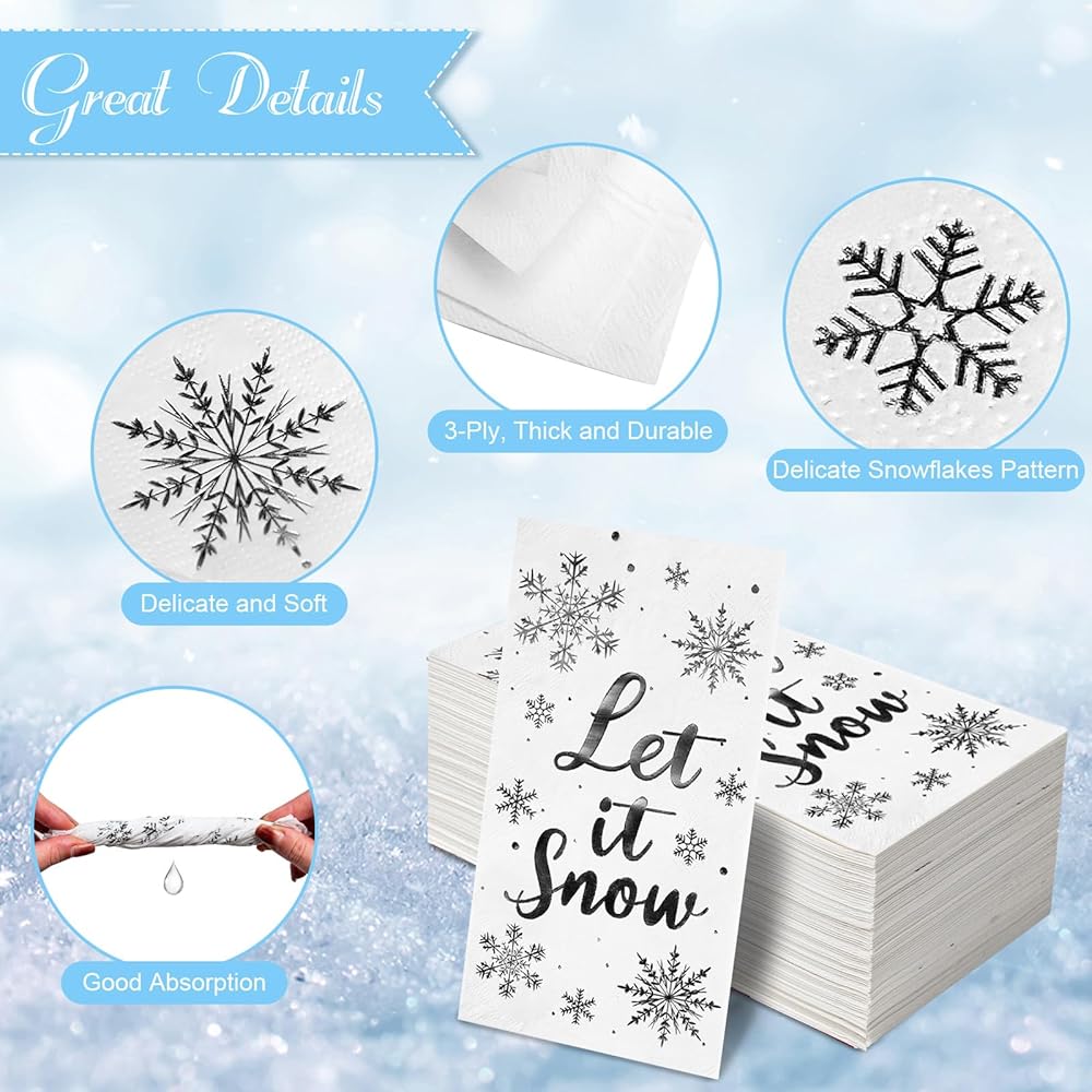 • 【Thick and Soft】3-ply Let It Snow Christmas Snowflake Napkins are thick, soft and smooth to touch, odorless, highly absorbent to water and oil, durable and breathable, not easy to break when exposed to water, less likely to fade. Provide you with a great user experience.