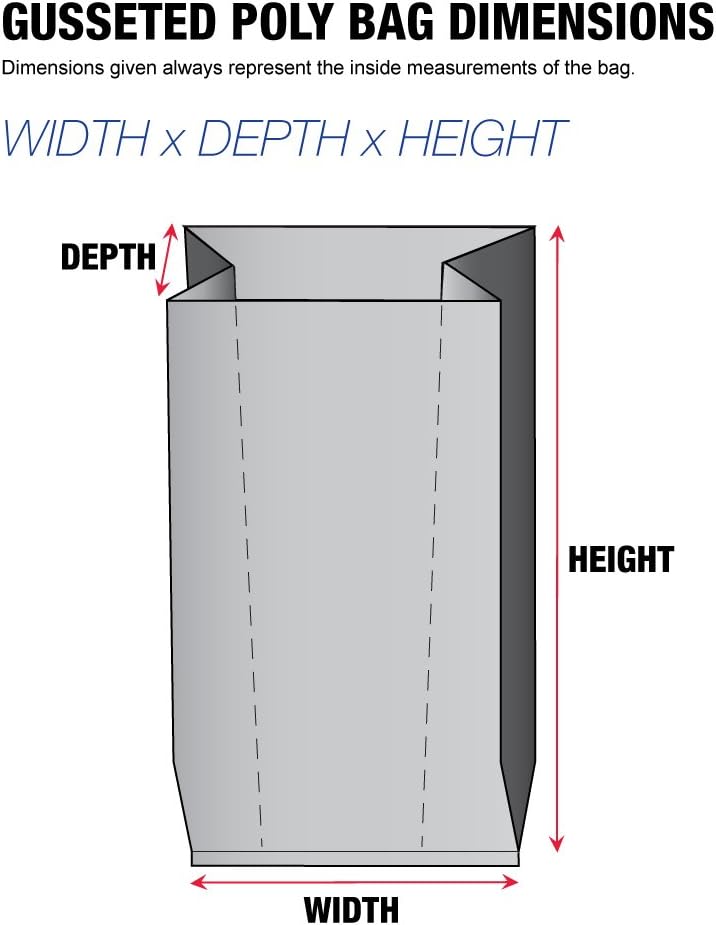 3 inch x 2 inch x 8 inch - 2 mil gusseted poly bags. Expandable sides and fitted bottom make packing bulky or irregular shaped items easier. Sizes listed are the inside usable space of the bag. Meets FDA and USDA specifications. Close bags with twist ties, bag tape or by heat sealing. Available in case quantities.