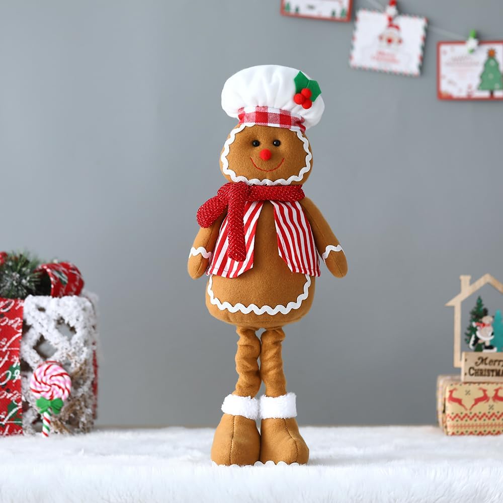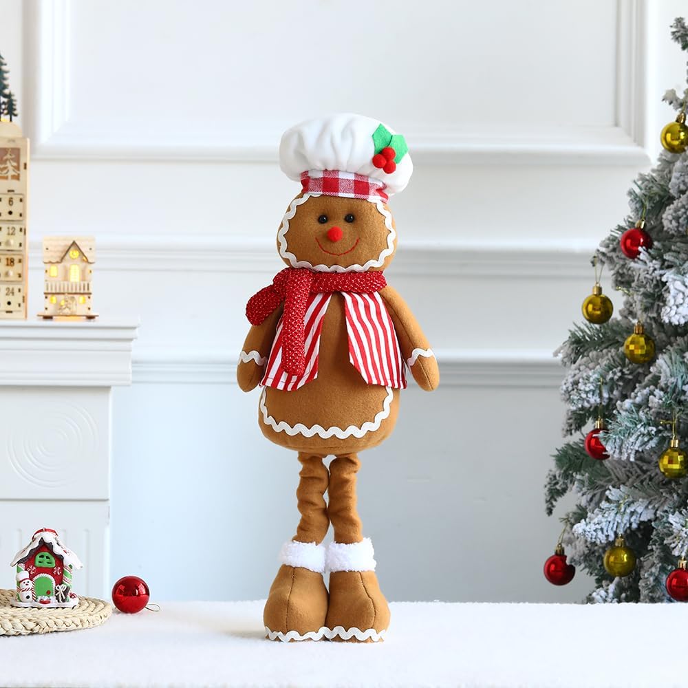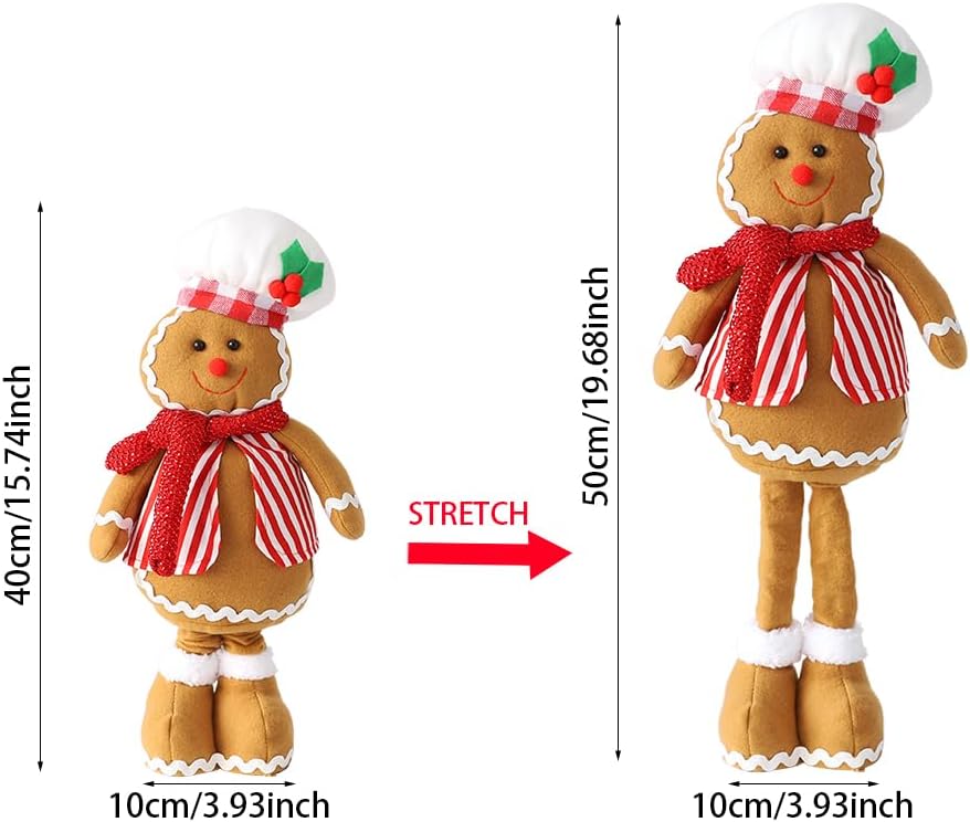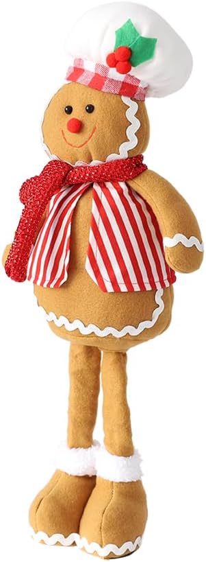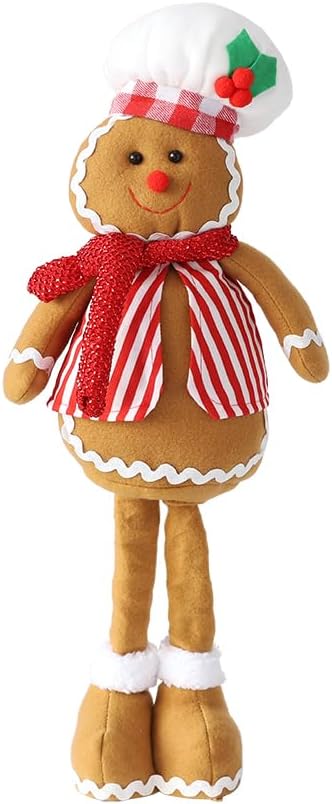 EASUTE 20 بوصة عيد الميلاد تلسكوبي قطيفة رجل خبز الزنجبيل تمثال عيد الميلاد المعجنات الشيف دمية زخرفة واقفة ديكورات المنزل دمية باب نافذة طاولة مدفأة داخلية عطلة ديكور الحفلات (بني)
