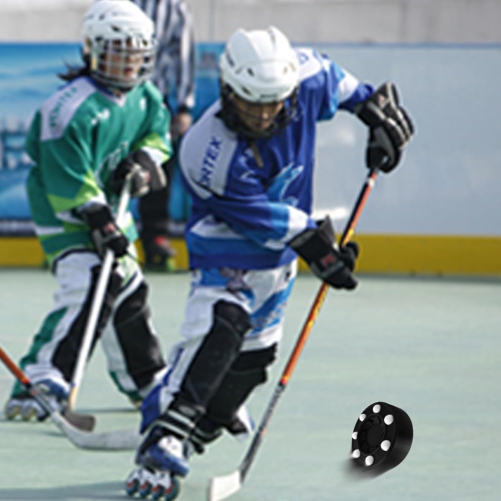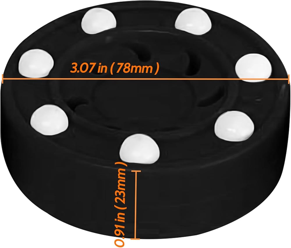 [Unique Design] These ice hockey pucks are revolutionary in design. Committed to bringing you the best puck possible, these accessories have high impact nylon glides to increase stability and reduce friction, giving you the fast and smoothest play.