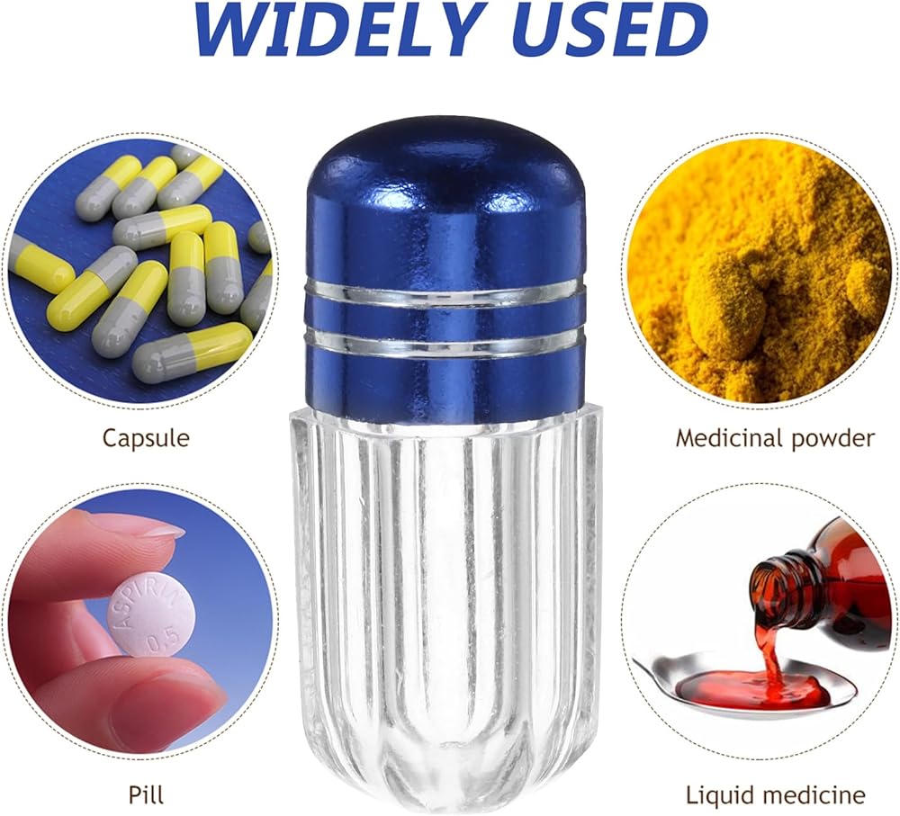 DescriptionOur transparent plastic containers are great for storing your pills for travel. Their compact size makes them easy to carry with you wherever you go, and the clear allows you to easily see what's inside, ensuring easy identification. Whether you're outside or just need a convenient method to store your pills at home, our empty bottles with caps are the nice solution.Features-Color:Blue-Material:Plastic-Size:3.20X1.30X1.30cm/1.26X0.51X0.51in-【Compact Size】Our empty bottles are designed to be small and compact, with each bottle capable of a single pill.-【Transparent Material】Made with premium plastic, our travel pill bottles feature a transparent body that allows you to easily see what's inside, ensuring easy identification.-【Secure Cap】Our bottles come with a secure cap that ensures your pills won't spill out, keeping them safe and reliable.-【Easy to Carry】Our travel bottles are lightweight and easy to carry, making them suitable for taking with you wherever you go.-【Multi-Purpose】Our versatile containers also be used to store candy or other small items, making them a addition to your travel gear.- Color: Blue.- Size: 3.20X1.30X1.30CM.Package Including20 x Pills Bottles