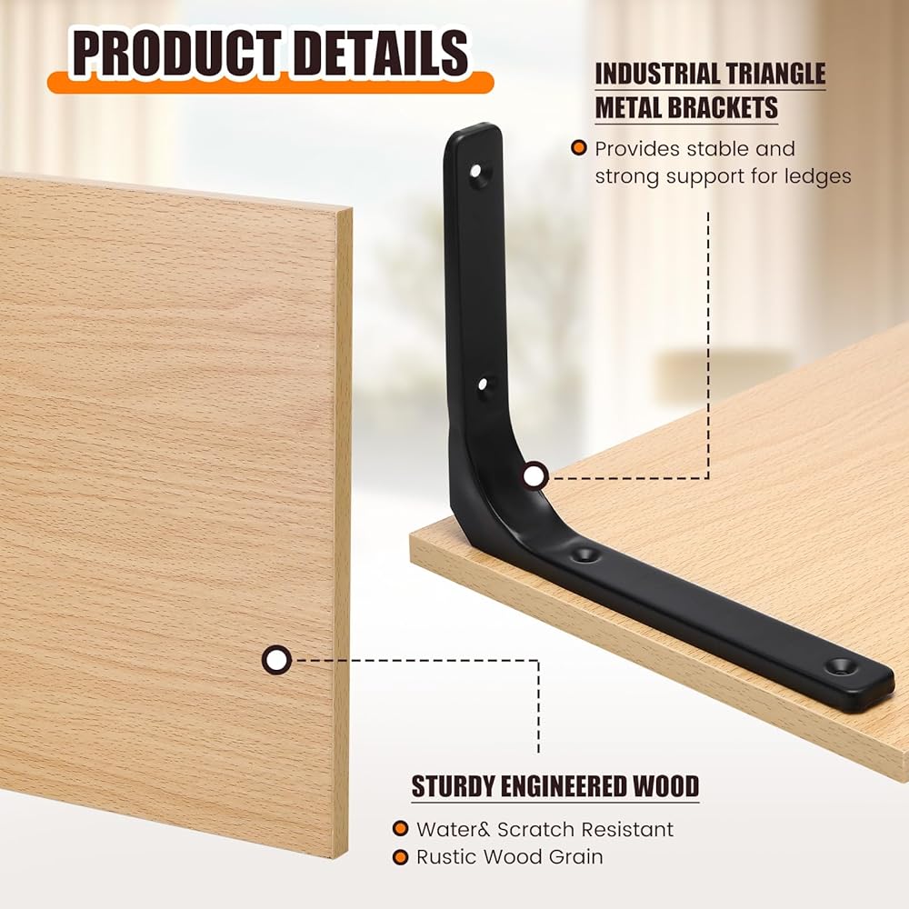 • Classic, Eye Catching Wall Decor: showcase your unique personality and style with our hanging shelves; The brackets are installed below the board, adding a classic touch to any living space and complementing various decor styles seamlessly