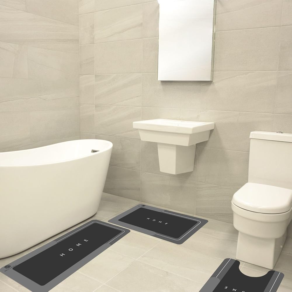 مجموعة سجادة الحمام، 3 قطع - سجاد حمام مطاطي غير قابل للانزلاق، سجادات أرضية الحمام فائقة الامتصاص وقابلة للغسل، سجادة دش مطاطية، حصيرة سحرية مع سجادة مرحاض لغرفة الاستحمام في حوض الاستحمام (رمادي داكن)