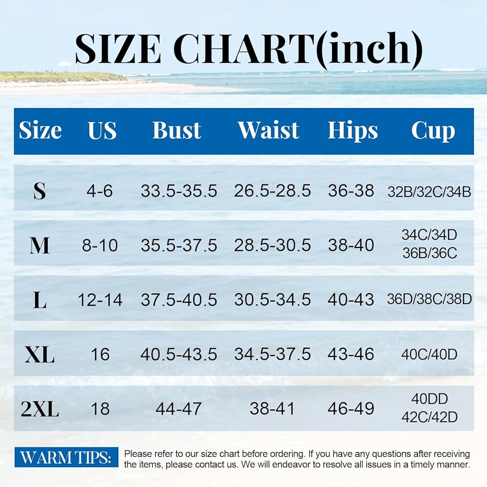 المواد: يضمن النسيج السميك والمتين لمجموعة البكيني هذه ارتداءً يدوم طويلاً. تتميز كل من القمصان والملابس الداخلية بالمرونة الجيدة ومناسبة للنساء من جميع الأحجام. لن ينكمش البكيني أو يبهت بعد الغسيل، ولن يمكن رؤيته عندما يكون مبللاً. تضيف الطباعة المزخرفة لمسة لطيفة وعالية الجودة إلى ملابس السباحة الخاصة بك.