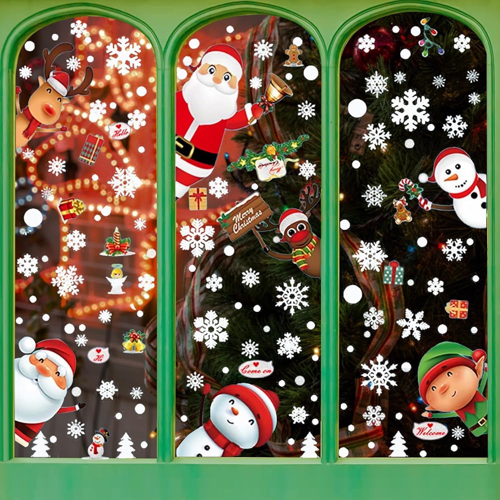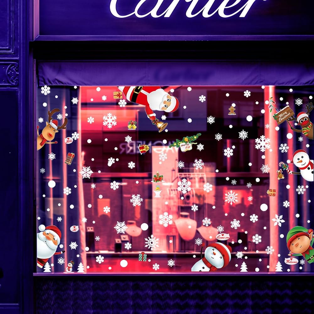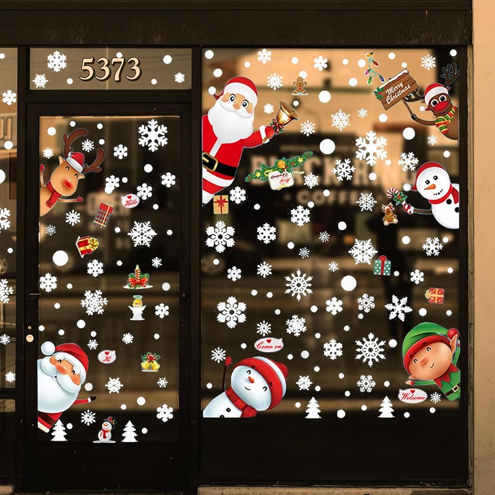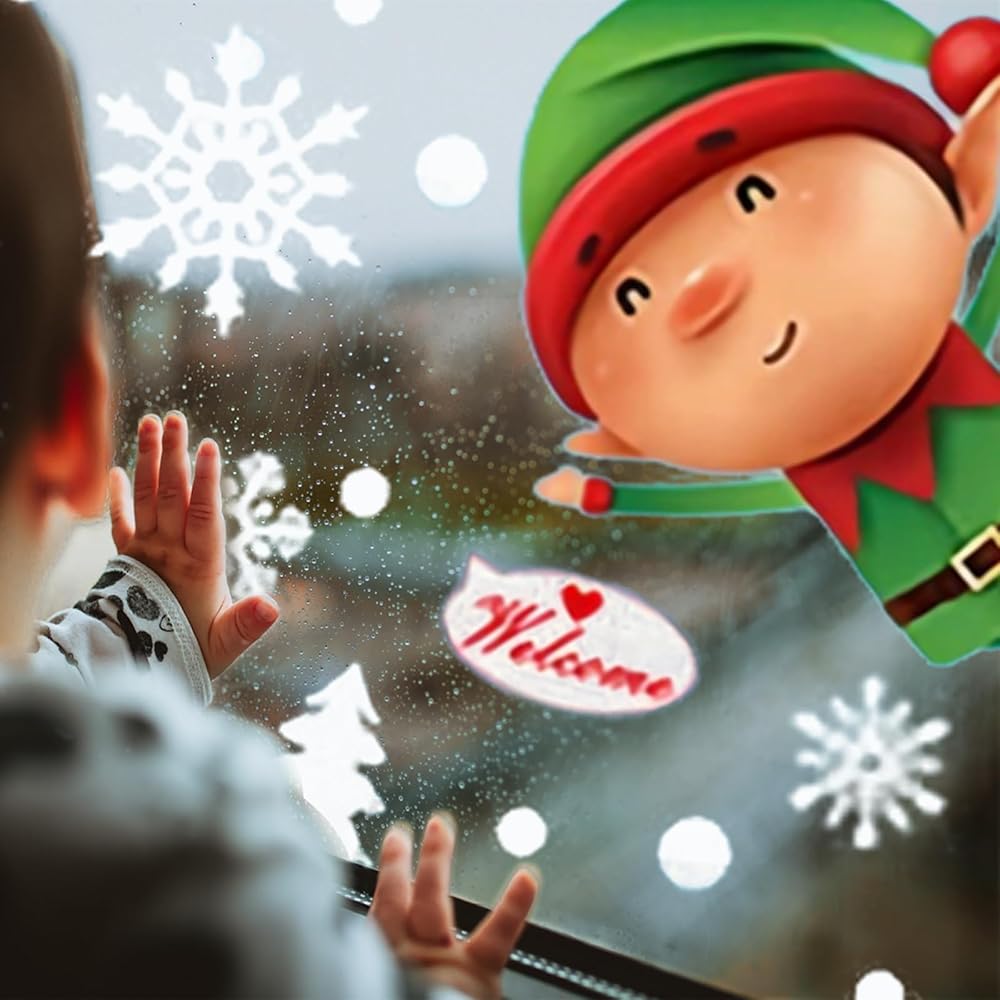 • أنماط موضوع عيد الميلاد: تختتم ملصقات النوافذ عدة أنماط من سانتا كلوز، وشجرة الكريسماس، والأيائل وندف الثلج.