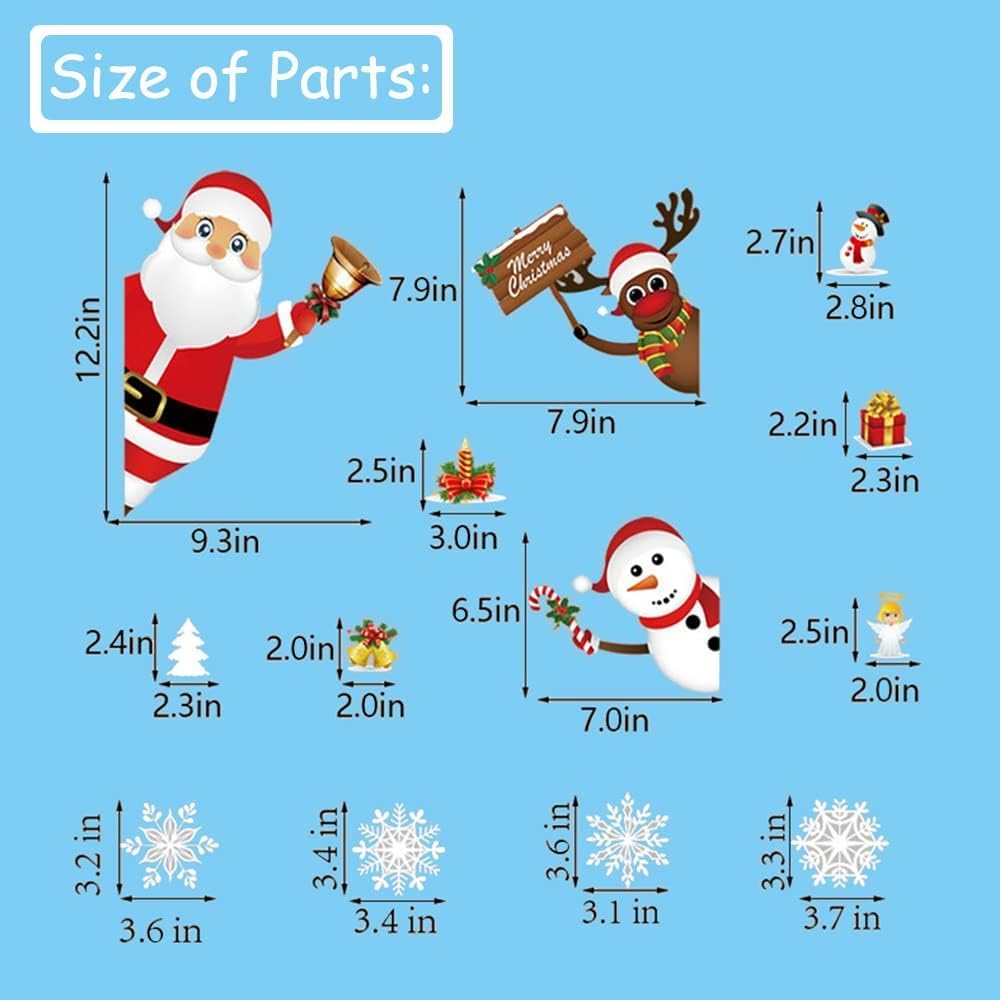 • استخدام واسع: يمكن وضع ملصقات عيد الميلاد على سطح الجدران الملساء والخشب والعقلي والزجاج والبلاستيك. إنها مناسبة للنوافذ الزجاجية والمرايا والثلاجات والزجاجات وغيرها. ملصقات مثالية لتزيين المنزل والمتجر في عيد الميلاد