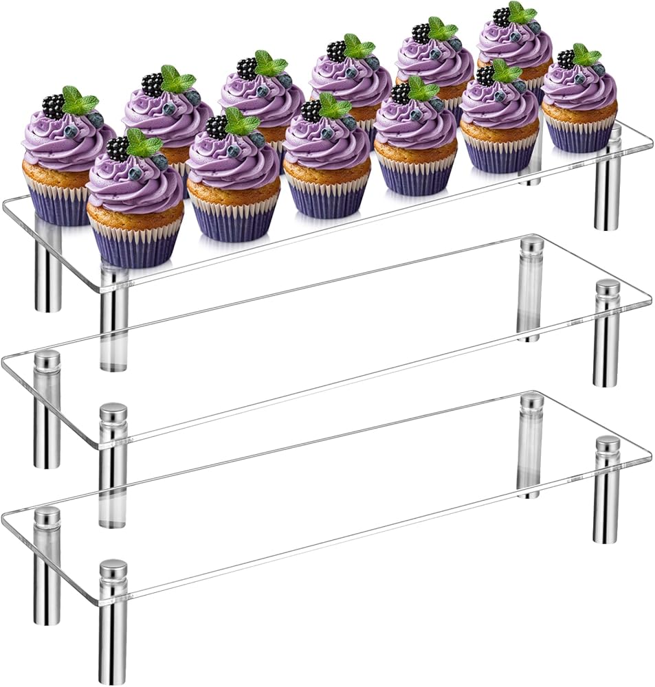 • Package Includes: you will receive 3 acrylic dessert display stands, the size is 11.8 x 3.54 x 1.97 inches/ 30 x 9 x 5 cm, the size is suitable, the quantity is enough to meet daily and holiday party use