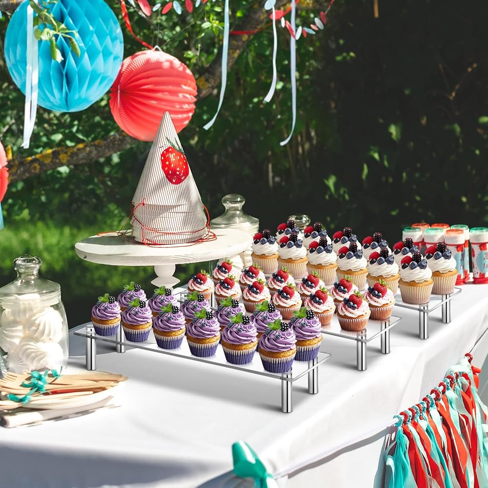 • Easy to Assemble: the cupcake display stand needs to be assembled by yourself; Each stand is equipped with 4 screws; You only need to install the screws on the reserved holes of the acrylic plate; Fix both sides to get a dessert display stand