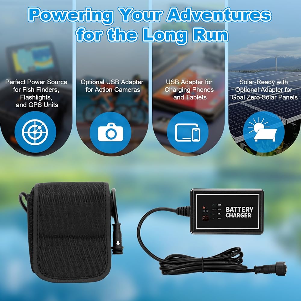 • 🚀 Seamless Portability, Effortless Convenience 🚀 Say goodbye to cumbersome equipment on your outdoor excursions! The Betollo 20Ah Pro Power Kit is designed with portability in mind, offering a lightweight and compact power source for your sounder, GPS, fish finder, or any other electronic device. Enjoy the freedom to roam, unencumbered by heavy gear.