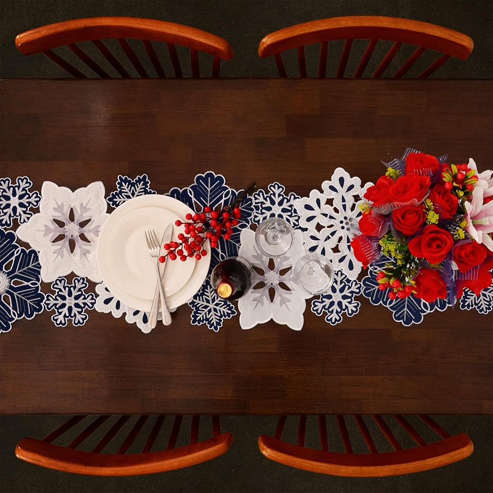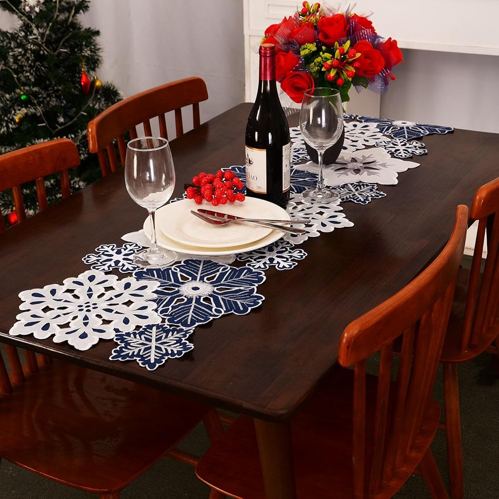 - ديكور احتفالي: مفرش الطاولة هذا على شكل ندفة الثلج مثالي لإضافة لمسة من سحر الشتاء لحفلة عيد الميلاد أو احتفالات العطلات.