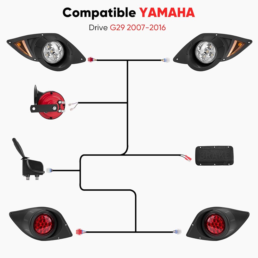 التطبيق - تم تصميم مجموعة الإضاءة Yamaha G29 هذه لموديلات Yamaha G29 Drive 2007-2016. عزز مظهر عربة الجولف الخاصة بك وعزز السلامة والرؤية أثناء القيادة الليلية
