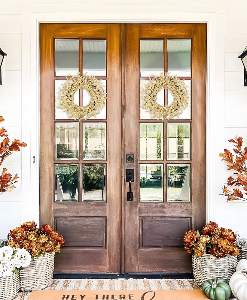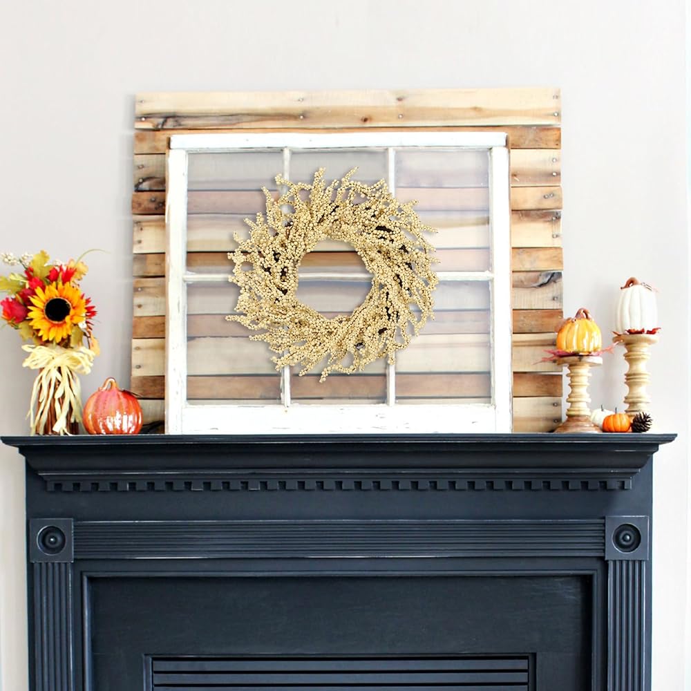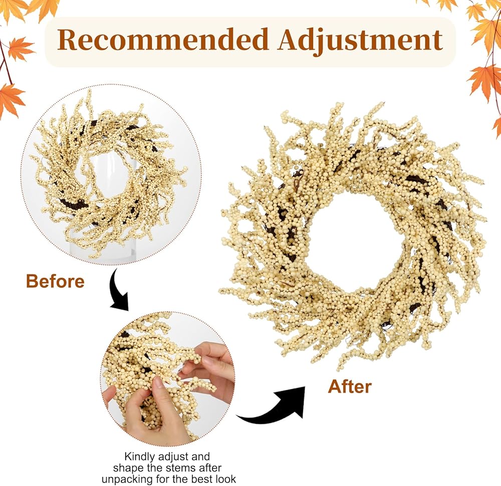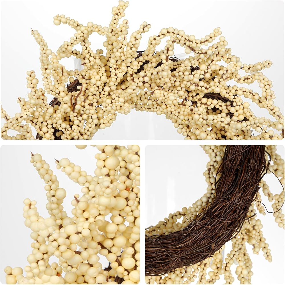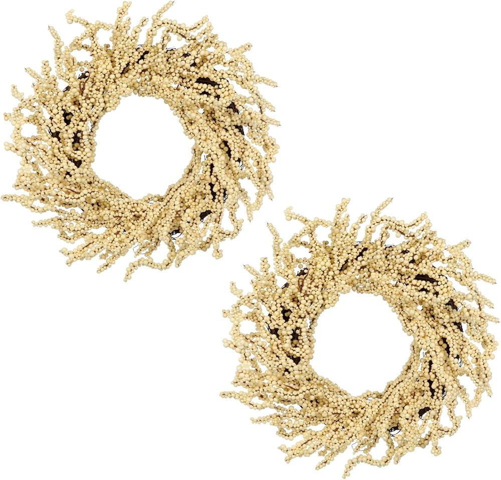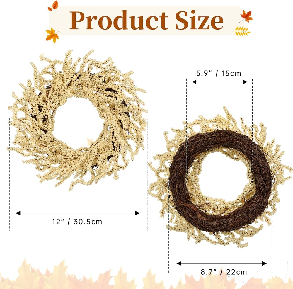 بذلة 2 عبوة سقوط التوت أكاليل 12 بوصة البيج الاصطناعية رغوة التوت إكليلا للباب الأمامي صغير الزهر الخريف في الهواء الطلق لخريف المنزل شرفة عباءة الشكر عيد الشكر عيد الشكر