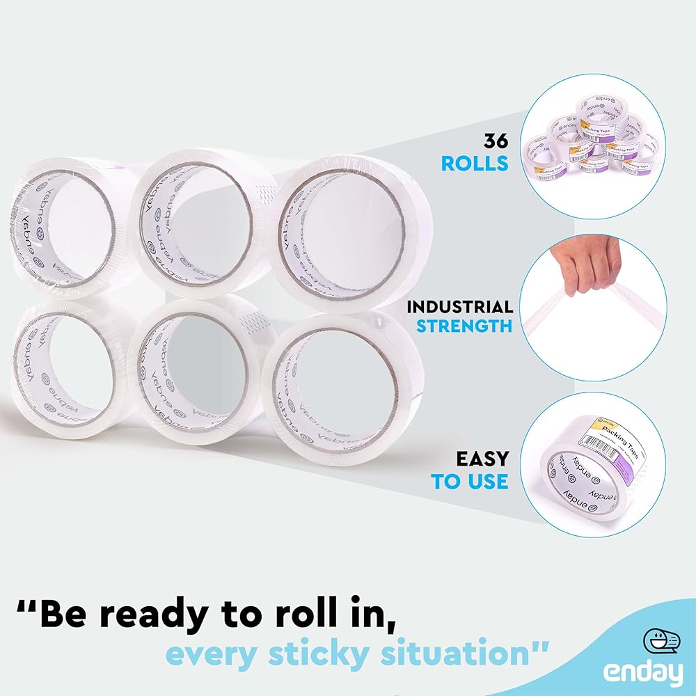 Introducing Enday's shipping tape rolls, your ultimate solution for all your packaging needs. This packing tape heavy duty option ensures that your packages remain secure during transit, making it the ideal choice for shipping, moving, and everyday use.