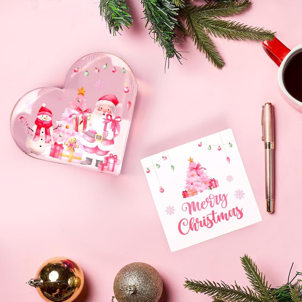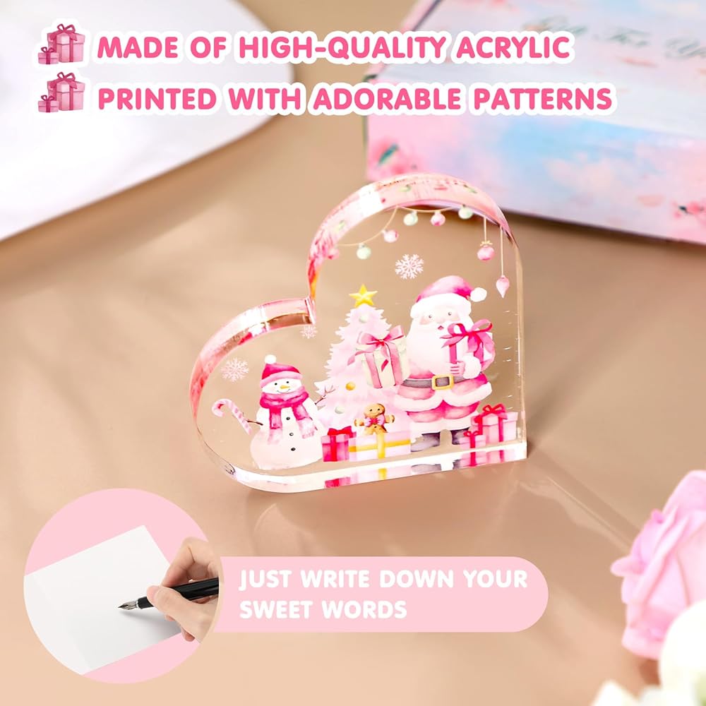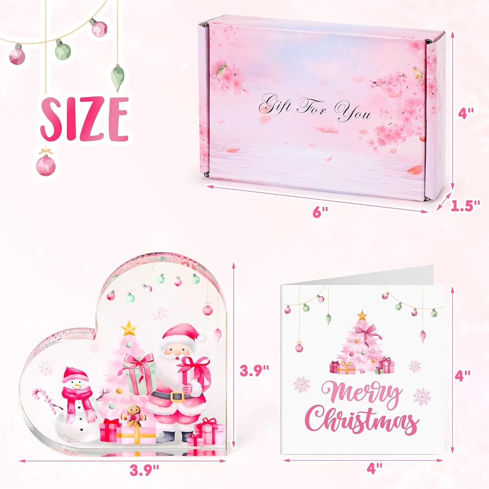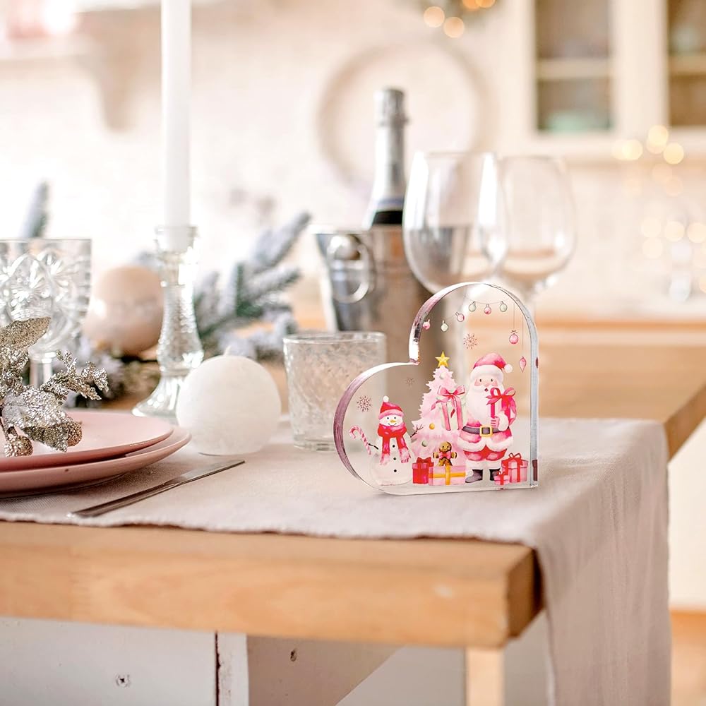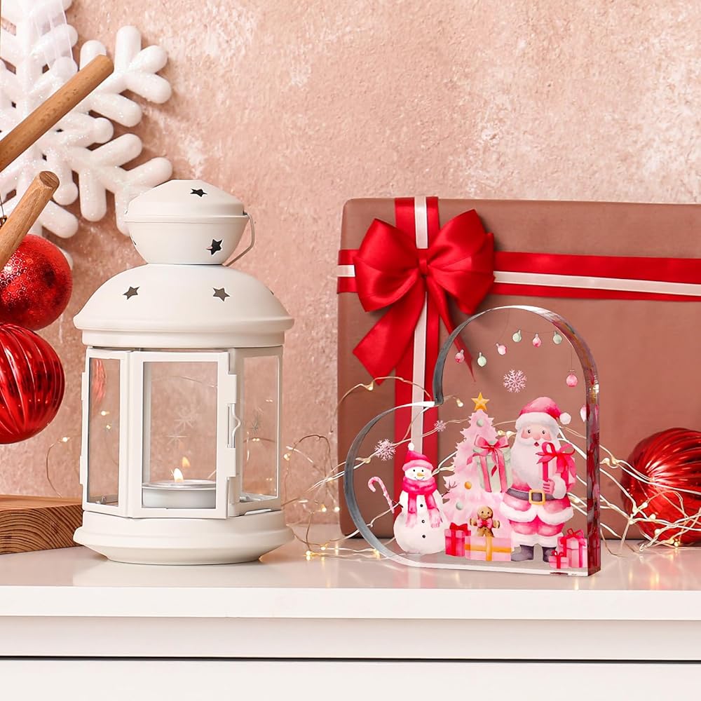 nefelibata زينة عيد الميلاد في الأماكن المغلقة، لوحة الاكريليك عيد الميلاد الوردي مع بطاقة، علامة عيد الميلاد لمكتب رف الطاولة، الوردي سانتا شجرة عيد الميلاد ديكور المنزل هدايا على شكل قلب للنساء زميل العمل