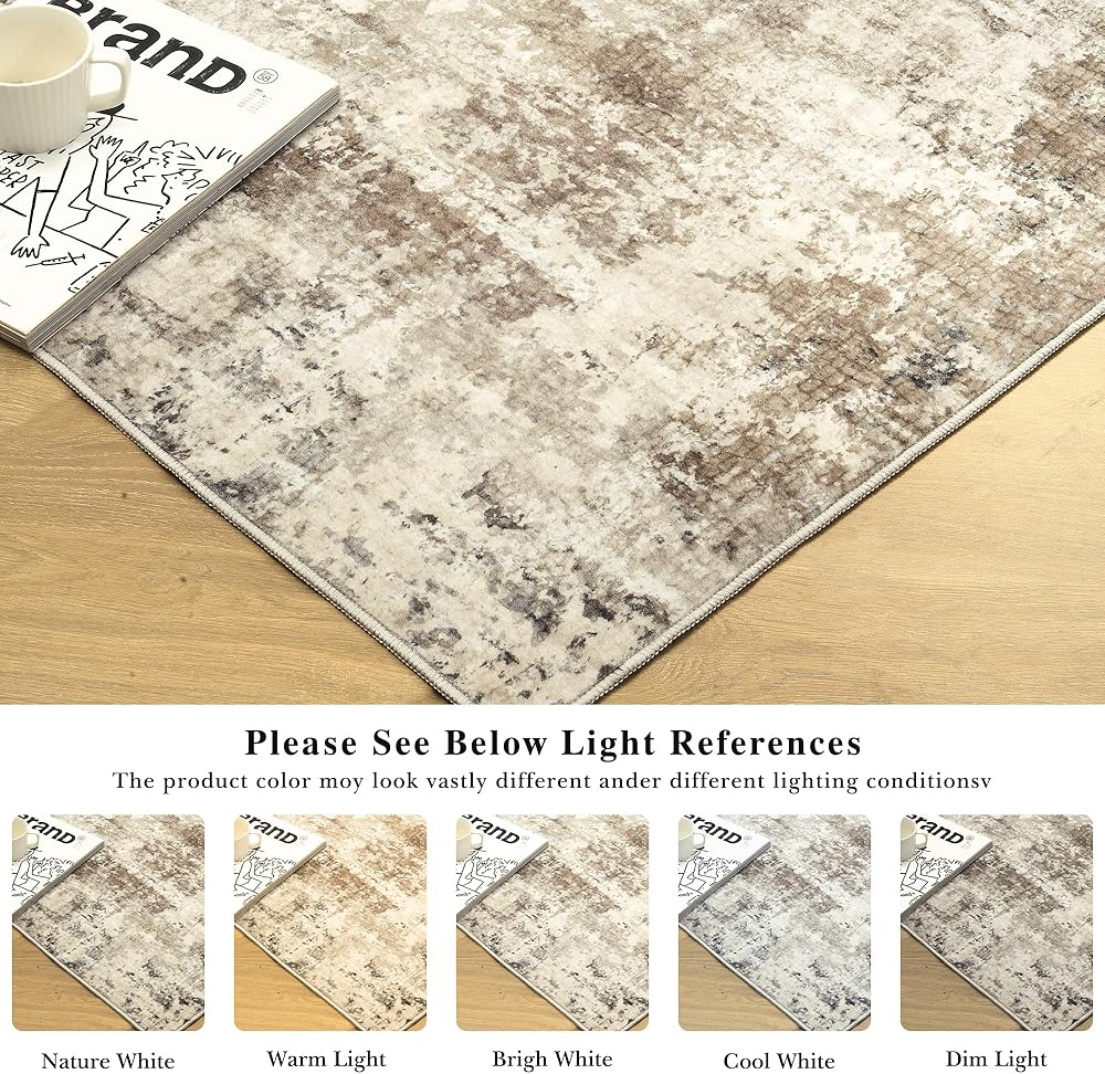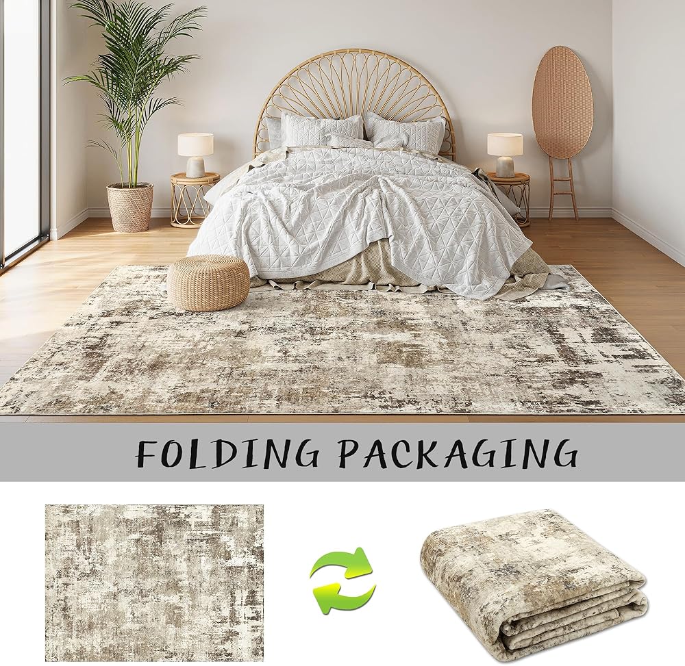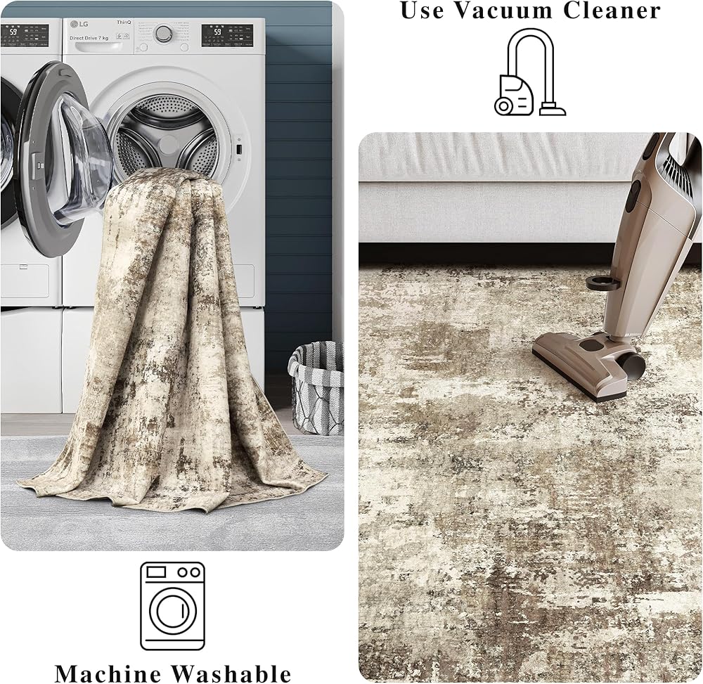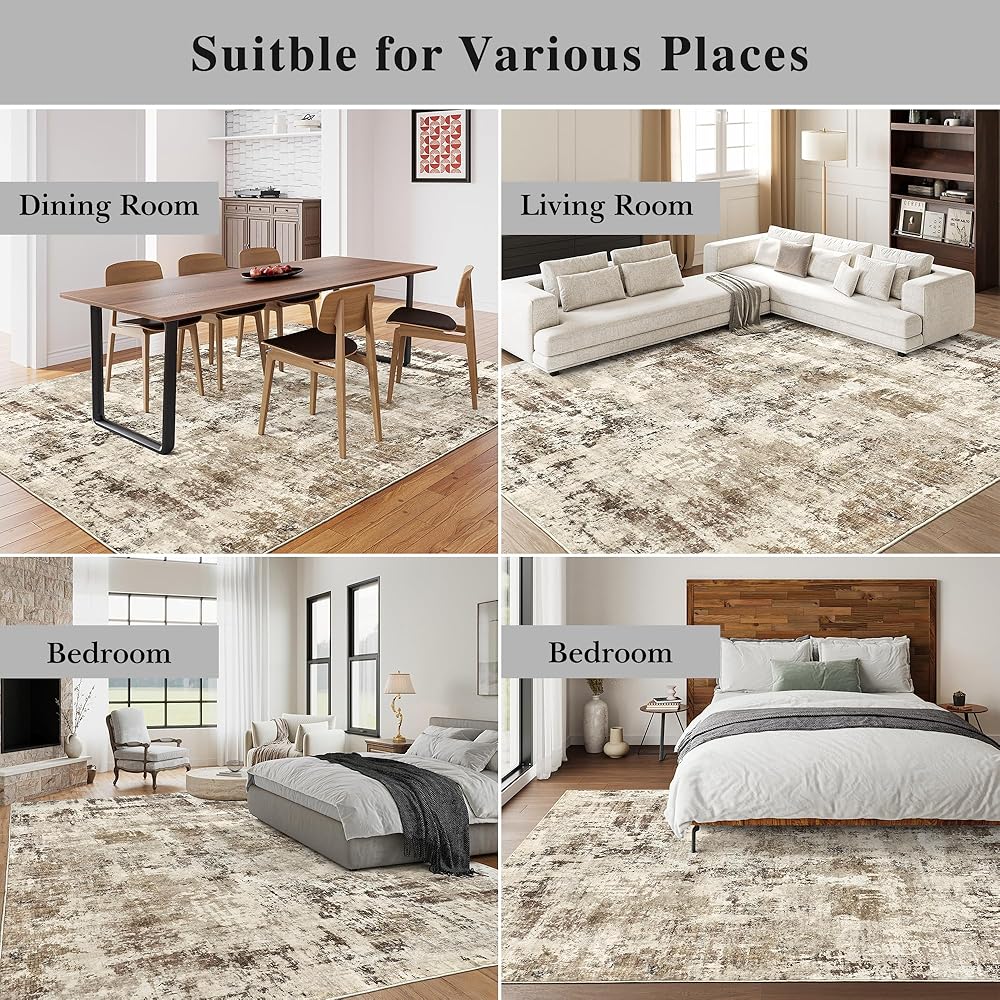 Art&Tuft Area Rugs 8x10, Abstract Washable Rug 8x10 - Ultra Soft and Thin, Low Pile, Stain Resistant Modern Large Area Rugs for Living Room, Bedroom, Office, Brown