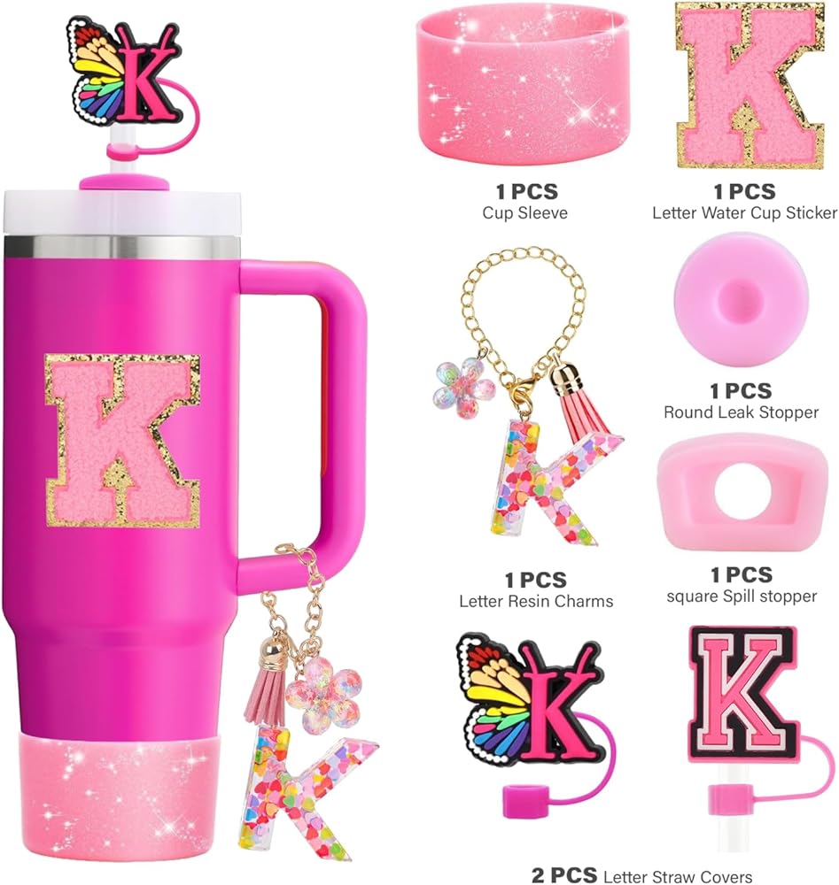 • زخرفة مخصصة: هذه المجموعة من ملحقات أكواب الترمس يمكن أن تجعل كوبك يبدو أجمل وأكثر جمالاً. تساعد أيضًا حليات الحروف الشخصية وملصقات الحروف الأبجدية الموجودة على جسم الكوب على تمييز العناصر الشخصية وتجنب حدوث التقاط الكوب الخطأ