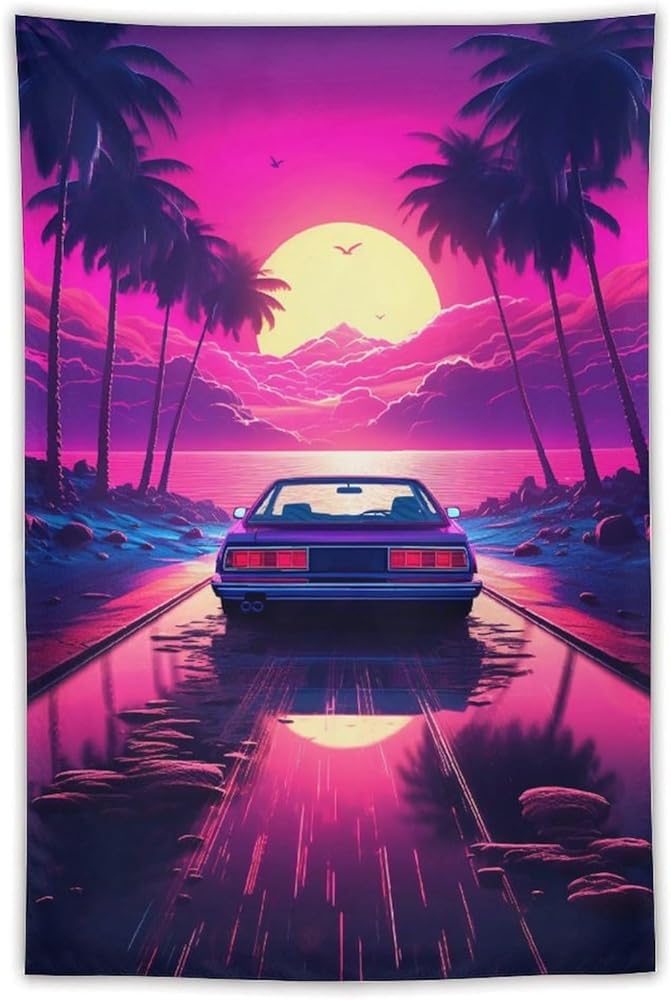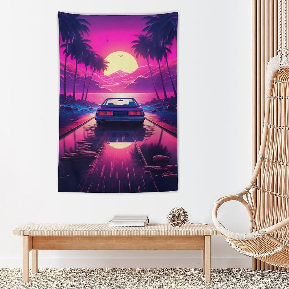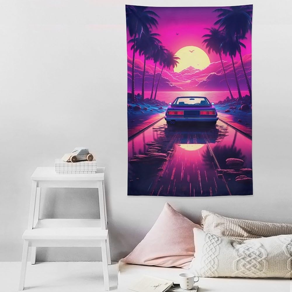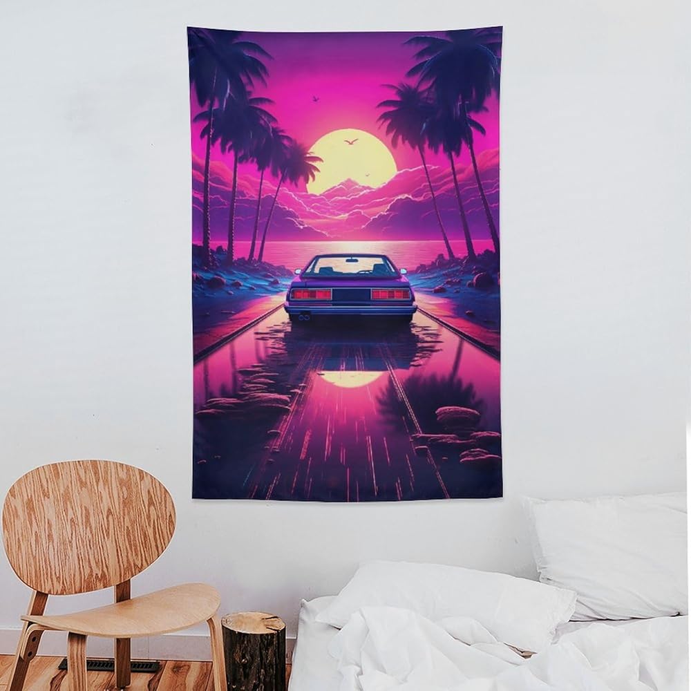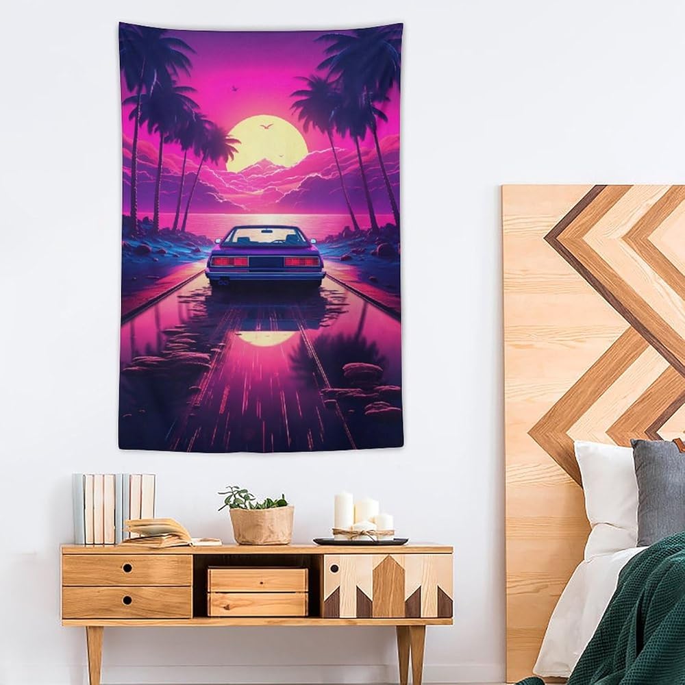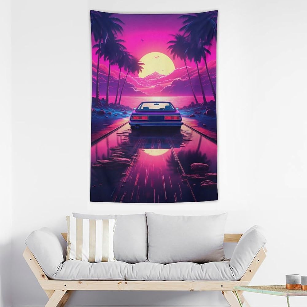qeopgne سيارة جدار الفن نسيج كبير الجدار شنقا النيون الأرجواني jdm سيارة Synthwave أنيمي الجمالية نسيج كبير ديكور الجدار لغرفة النوم غرفة المعيشة ديكور للرجال والنساء 30 "× 40"