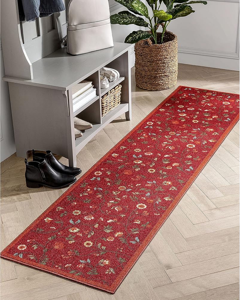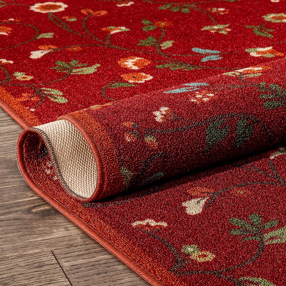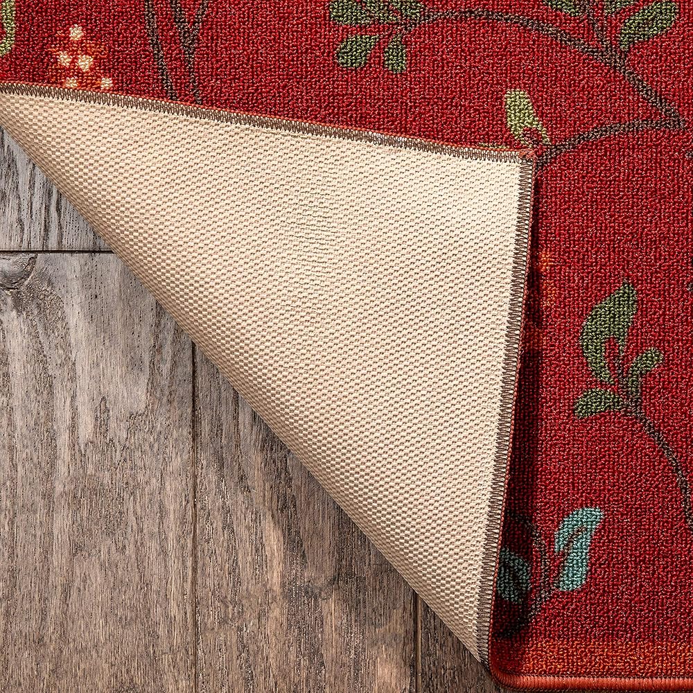 Designed for ultimate durability and care-free maintenance. This rubber backed rug is manufactured for well-wearing everyday use. An anti-skid, non-slip backing prevents sliding and machine washability means it's always easy to clean. The looped nylon pile is stain and resistant and doesn't trap dirt so it's super simple to vacuum.The thin, low-profile pile fits under doors, making this rug perfect for the entryway, hallway, kitchen, laundry room den, or patio.