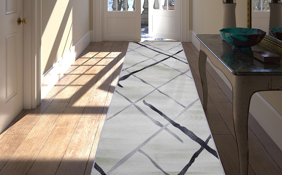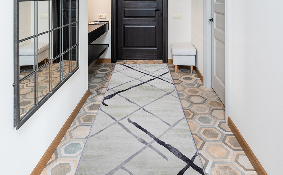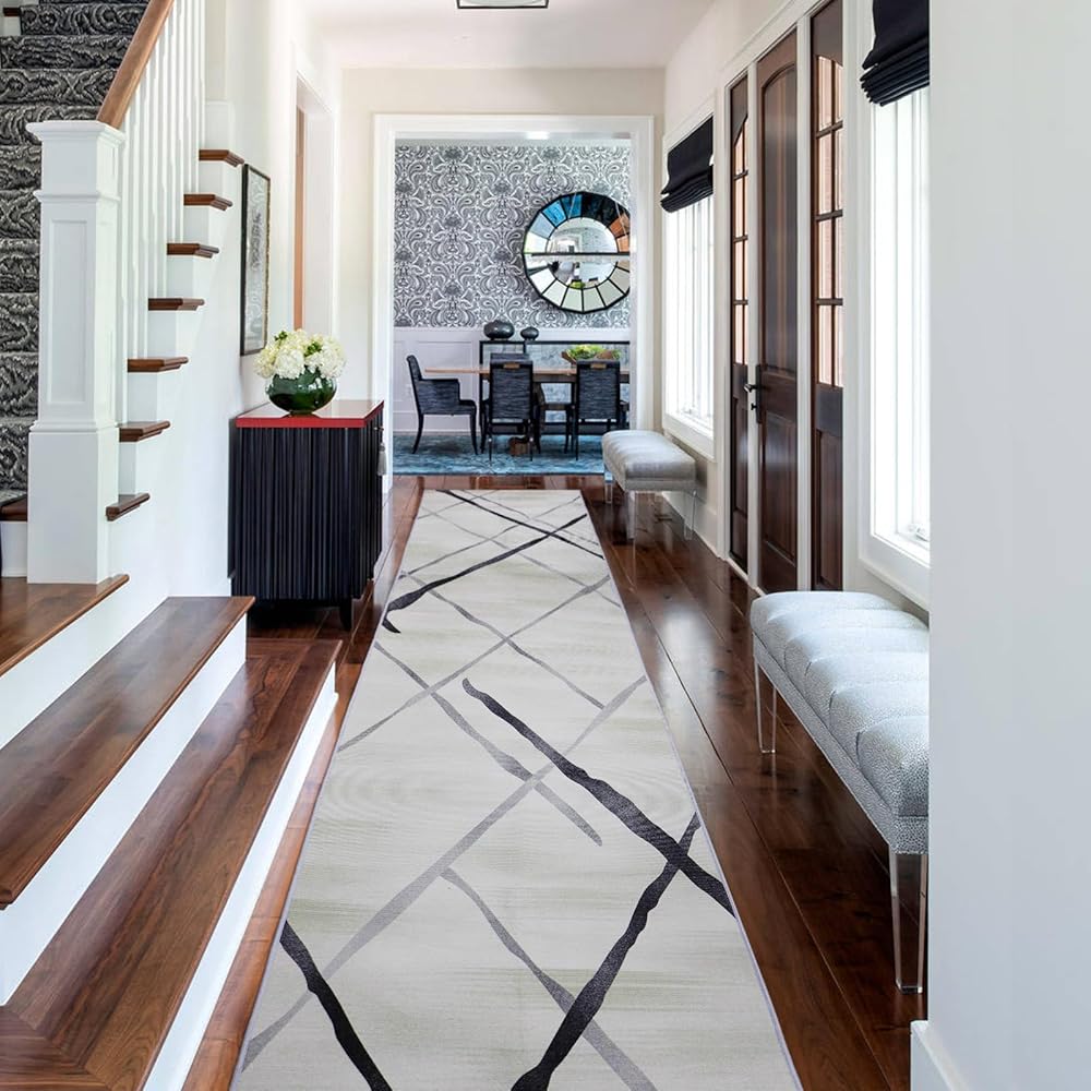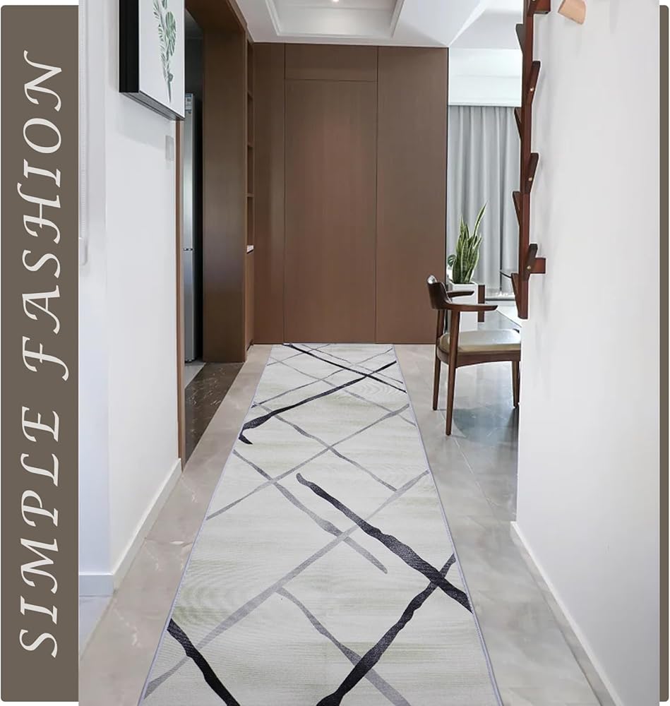 【نمط عصري】تجمع هذه السجادة الطويلة بين الطراز الكلاسيكي العتيق والحديث، وتتميز بتصميم خط هندسي مما يجعلها إضافة مبهجة ومذهلة لمنزلك