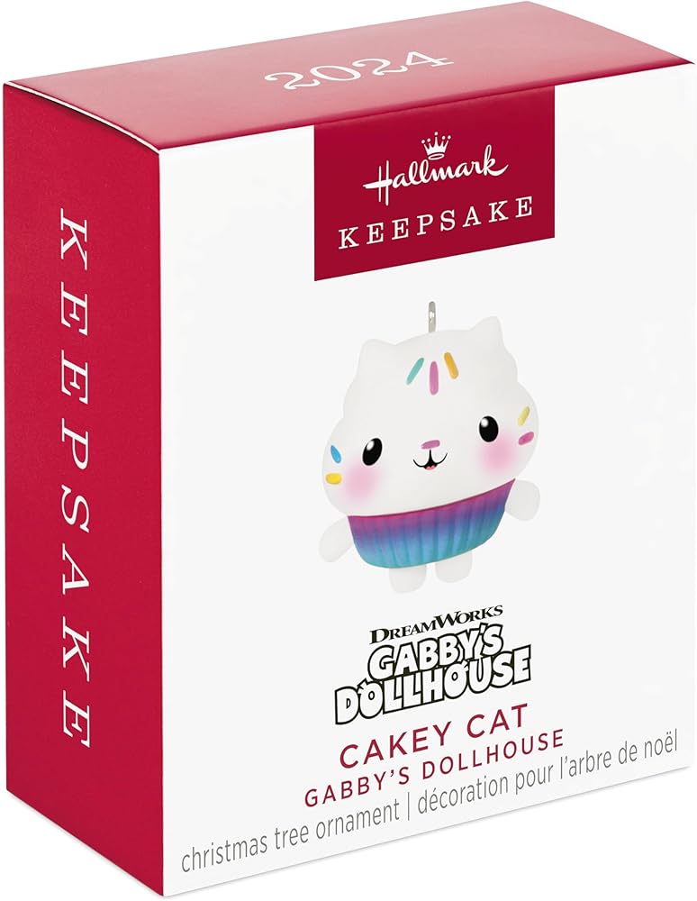While you're baking up some fun in the kitchen this holiday season, add a sweet treat to your tree, too! Fans of the Netflix preschool television series "Gabby's Dollhouse" will love this Christmas tree ornament of Gabby's half-kitty, half-cupcake friend, Cakey Cat. The adorable design features the spunky yet sensitive friend with a colorful muffin tin liner body and candy sprinkles as whisker and fur accents. With unparalleled artistry and exceptional detail, Hallmark Keepsake Christmas ornaments are perfect for preserving precious memories, commemorating special milestones and celebrating individual hobbies and interests. DreamWorks Gabby's Dollhouse © DreamWorks Animation LLC. All rights reserved.