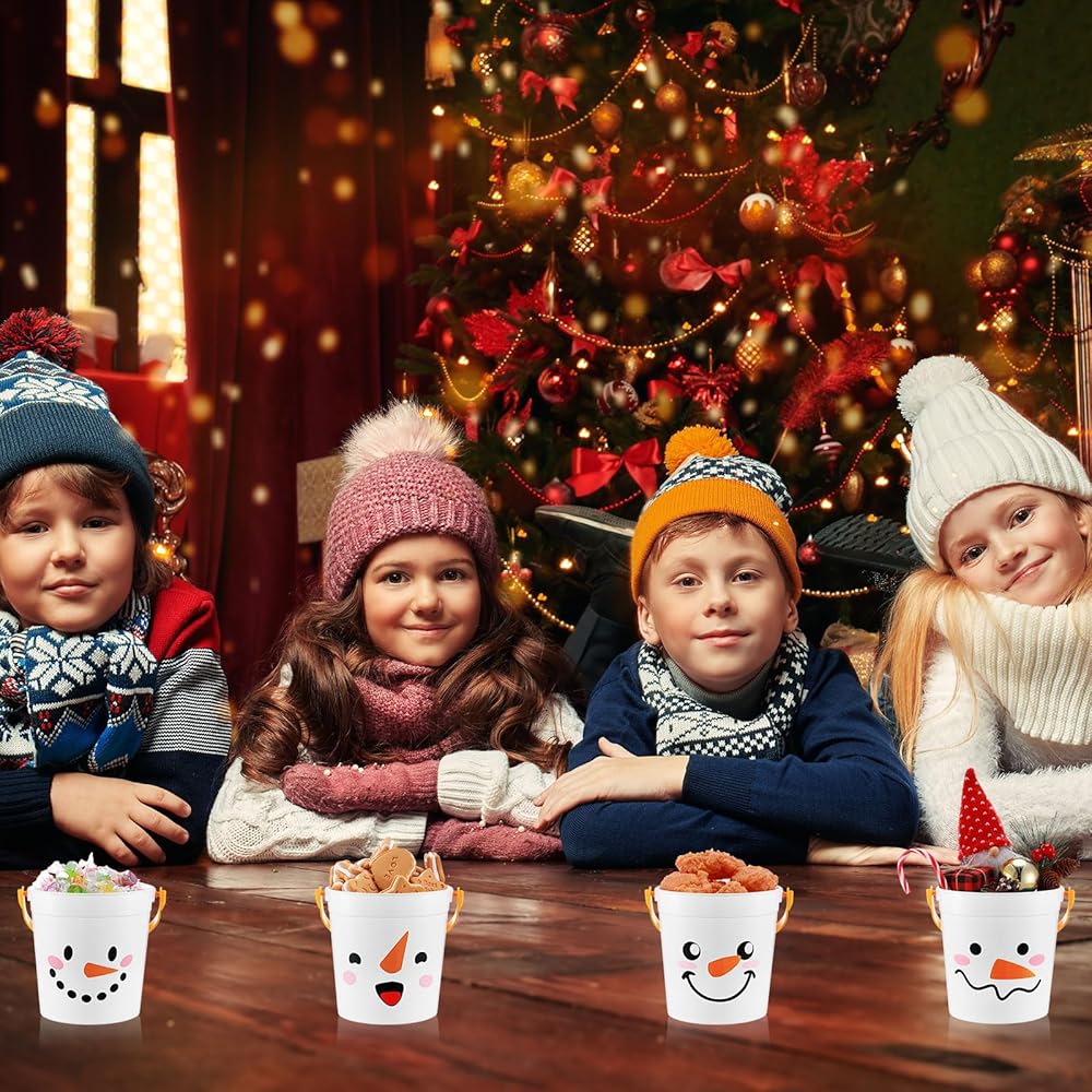 Christmas Snowman Design: Christmas treat buckets features 4 different sweet snowman smile face designs that are suitable for your Xmas party, winter holiday party, creating an ambiance of fun and laughter