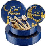 تصميم أنيق: تبدو هذه الأطباق البلاستيكية البيضاء مثل الصين كثيرًا، ولكنها مصنوعة من بلاستيك عالي الجودة، وهو متين وبأسعار معقولة. السكاكين والشوك والملاعق مصنوعة من البلاستيك باللون الذهبي، والذهب اللامع يجعلها تبدو أفضل. على الرغم من أنها بلاستيكية، إلا أنها حادة بما يكفي لتقطيع اللحوم اللذيذة.