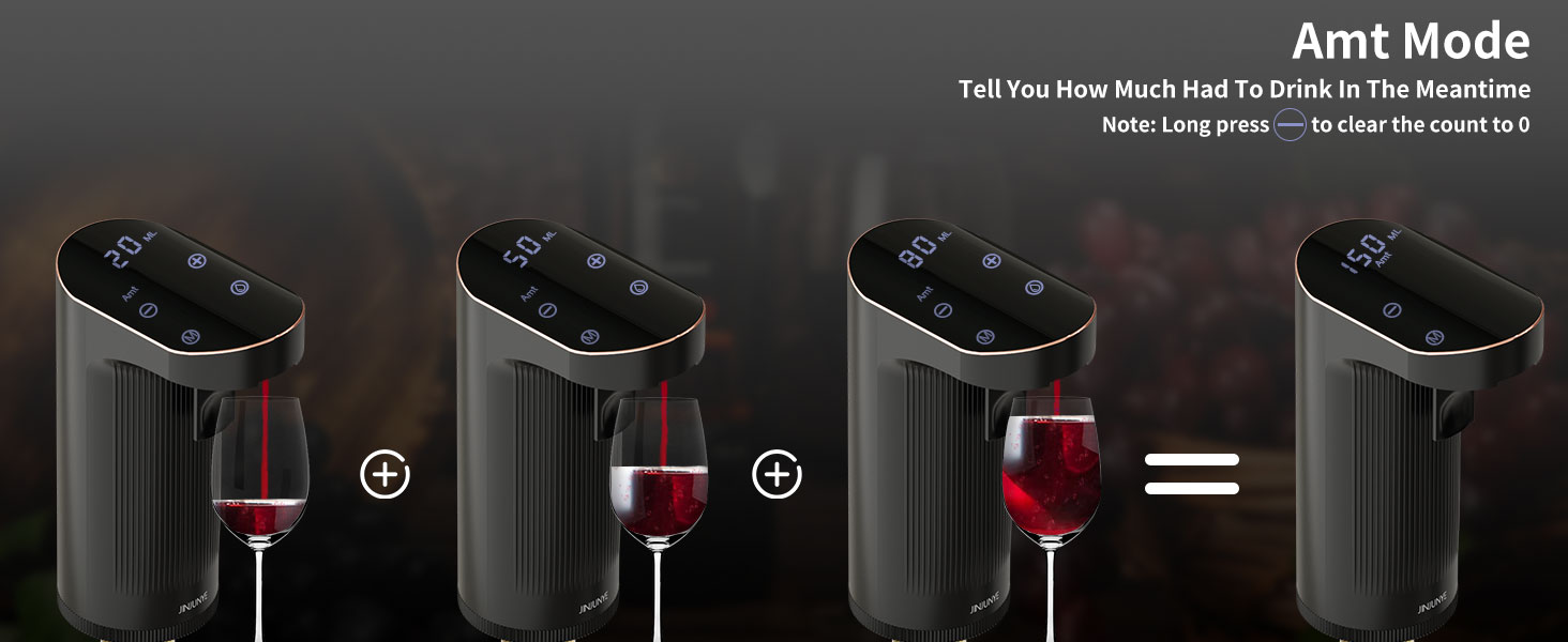 • إعداد كمي دقيق: يمكن لمصفاة النبيذ ضبط توزيع النبيذ بحرية بين 1-999 مل، ويتوقف تلقائيًا بعد التوزيع لمنع التدفق الزائد. يمكن لوضع Amt حساب إجمالي استهلاك الكحول. ابدأ بنقرة واحدة لبدء التنظيف الذاتي، وسهل التنظيف دون تفكيك