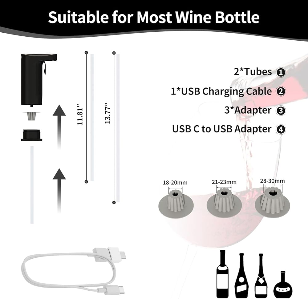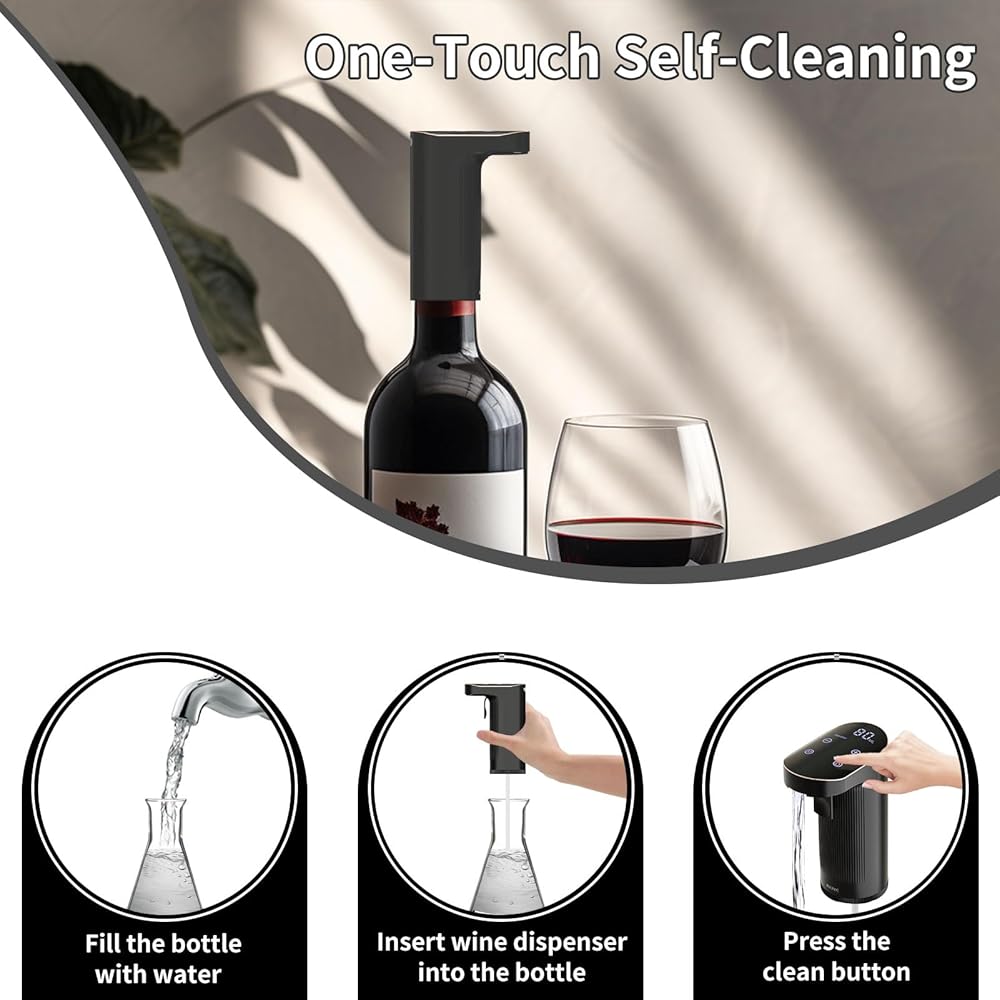 موزع النبيذ الكهربائي، دورق النبيذ بلمسة واحدة، مجموعة توزيع النبيذ 1-999 مل، بنك الطاقة ووظيفة التنظيف الذاتي، جهاز سكب مهوية النبيذ التلقائي يناسب معظم الزجاجات القابلة لإعادة الشحن عبر USB