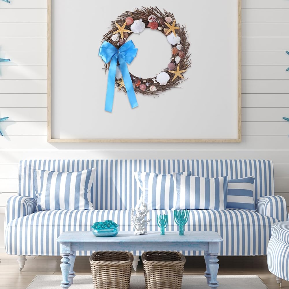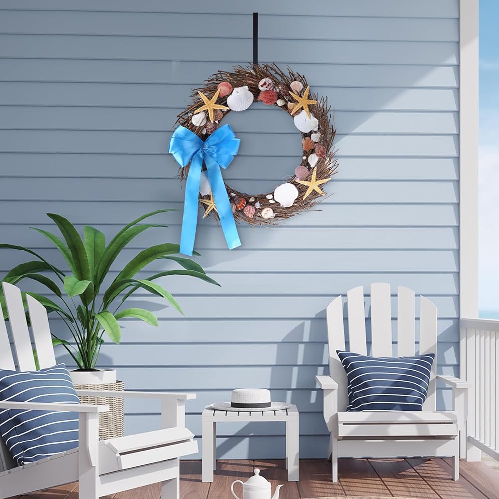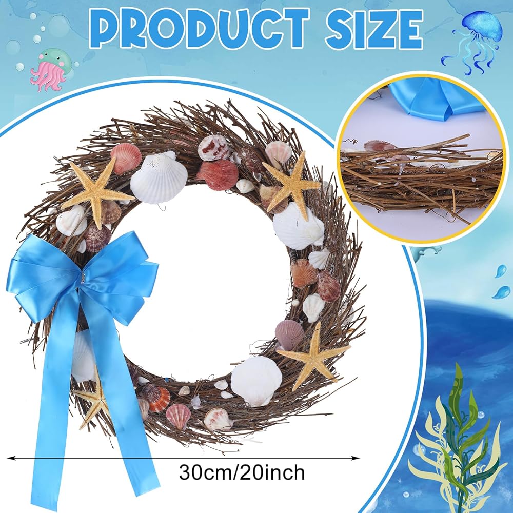 Unique Design: the overall design of the shell garland adopts classic ocean blue tones; Shells, conchs, starfish and other decorations are evenly distributed on the base; The blue bow gives you a fresh visual effect; Your family and friends will be happy and like it