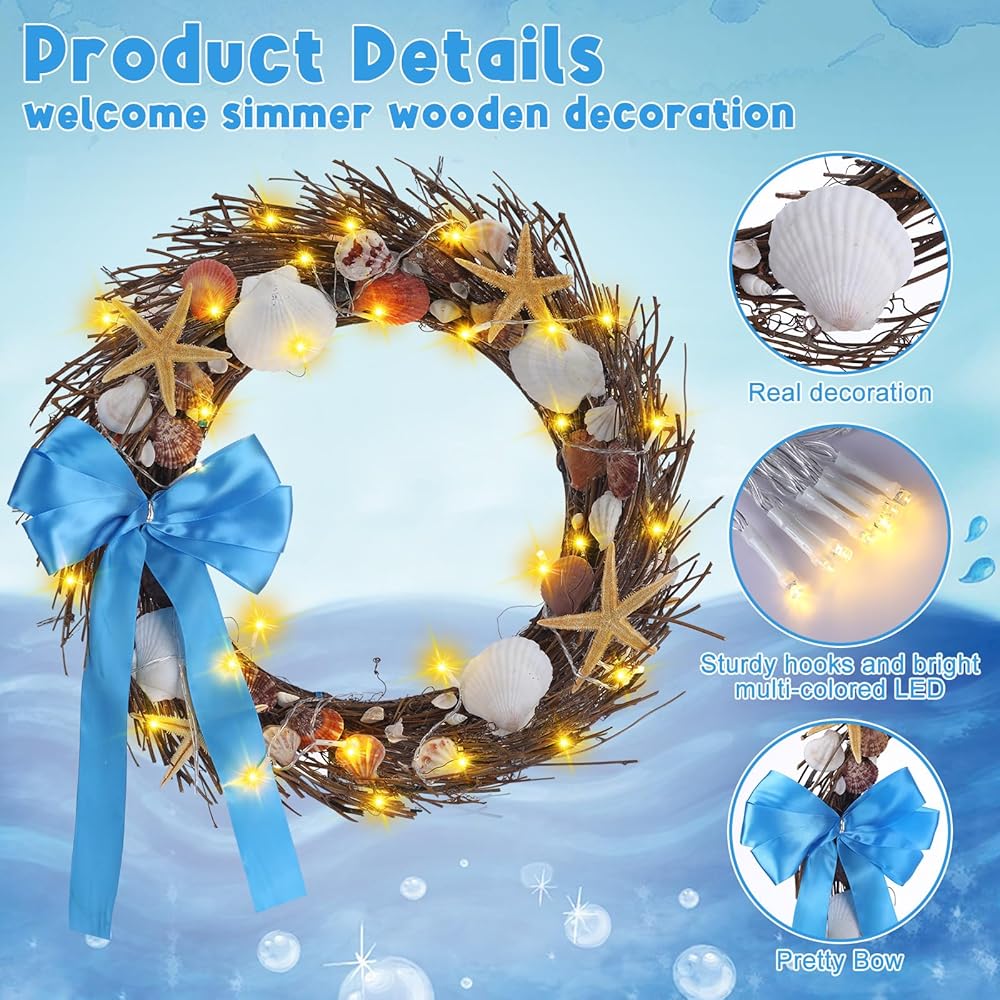 Ideal Size and Bright LED: our coastal spring and summer shell garland is approximately 20 inches in diameter and fits most door and decorative settings; Paired with hooks and bright LED string light, it creates a vibrant and colorful color shift to accentuate light up your home with a different feel